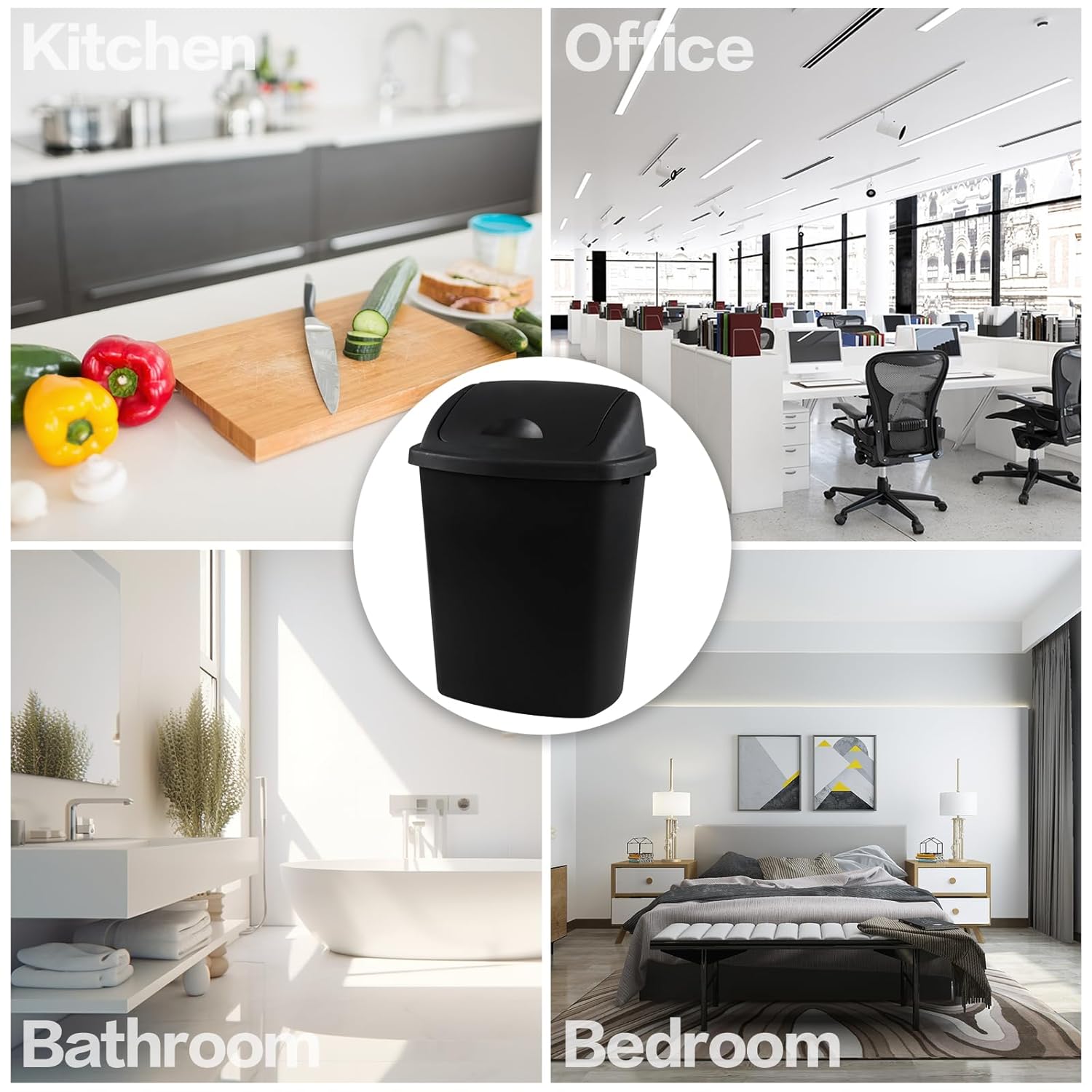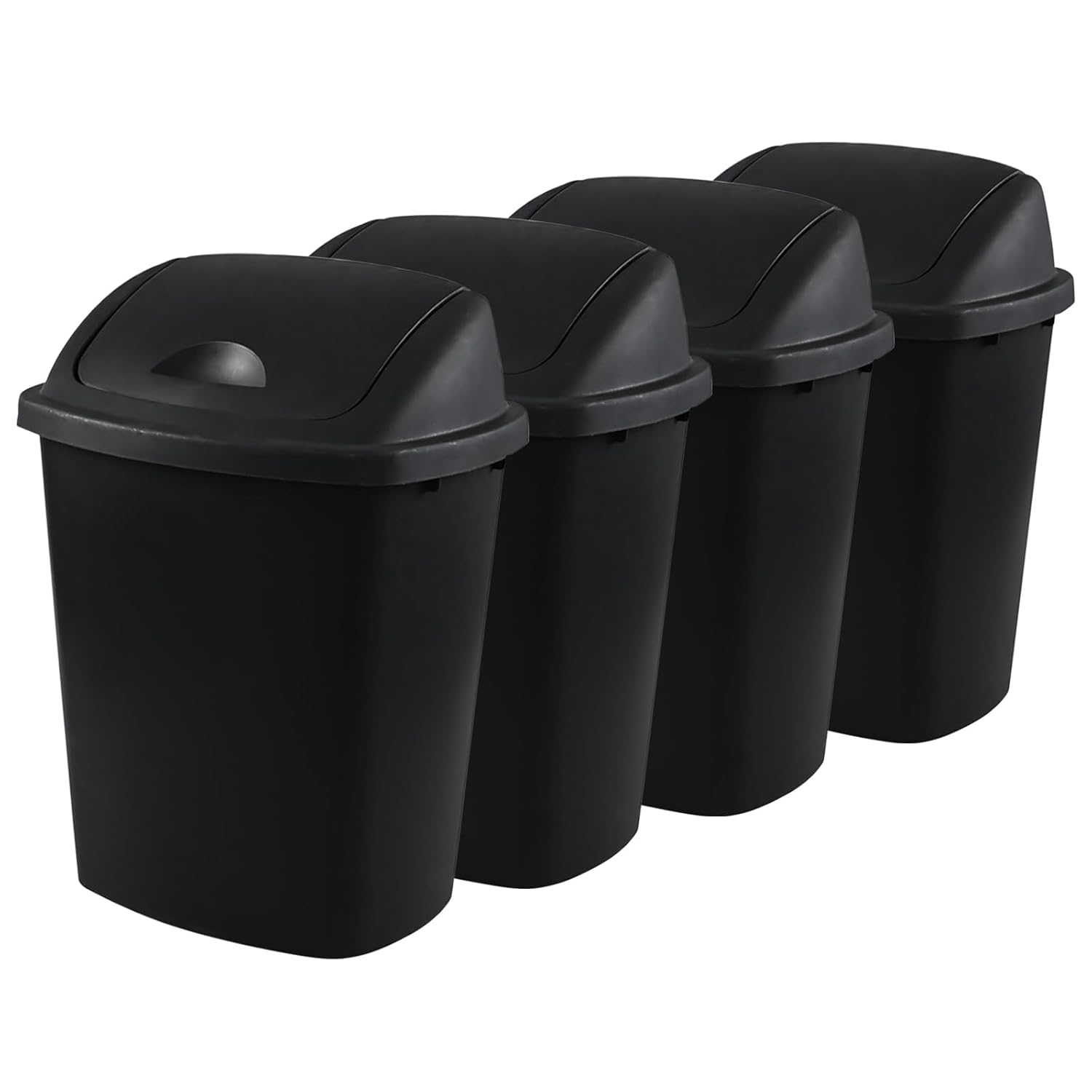 25 Liter Plastic Swing-Top Trash Can, 4-Pack Swing Lid Waste Can, Black