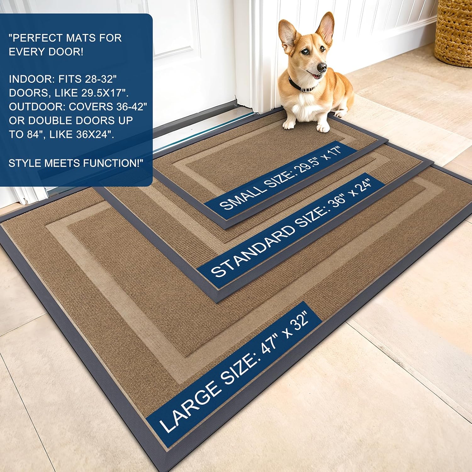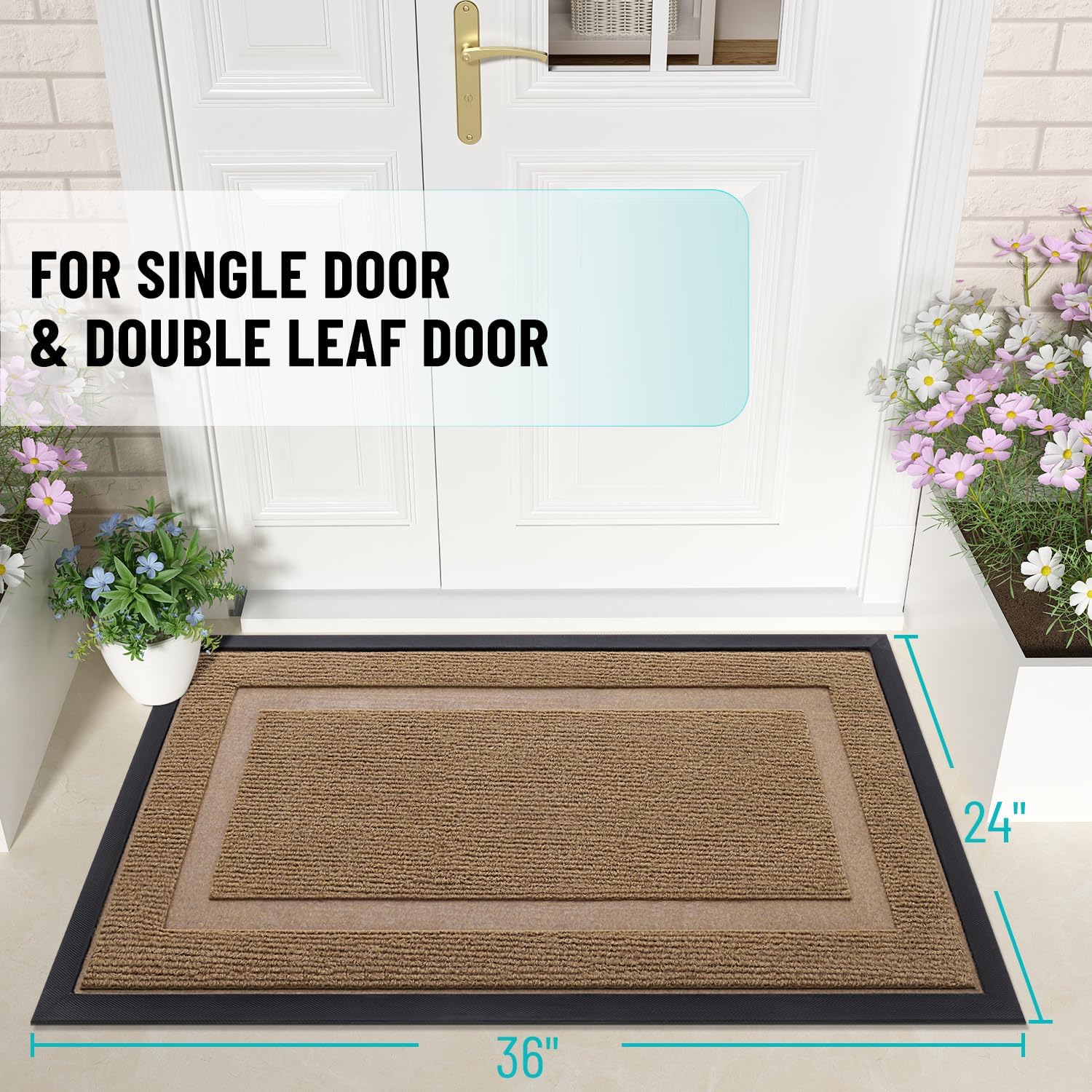 OLANLY Front Door Mat Indoor Outdoor Entrance, Waterproof All-Season, All-Weather Doormat, Sturdy Natural Rubber, Fade Resistant, Low Profile, Easy Clean Patio Porch Entryway Mat, 35x23, Light Borwn