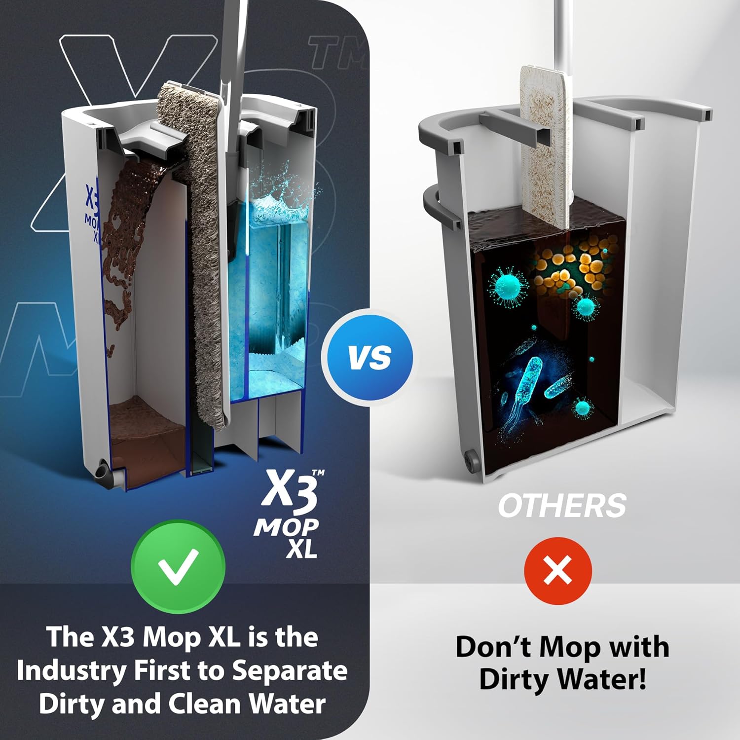 • 🌟 35% LARGER DESIGN: Cover more ground and get your cleaning done faster with our expansive mop head! The X3 Mop XL ensures you spend less time mopping and more time enjoying a clean home.