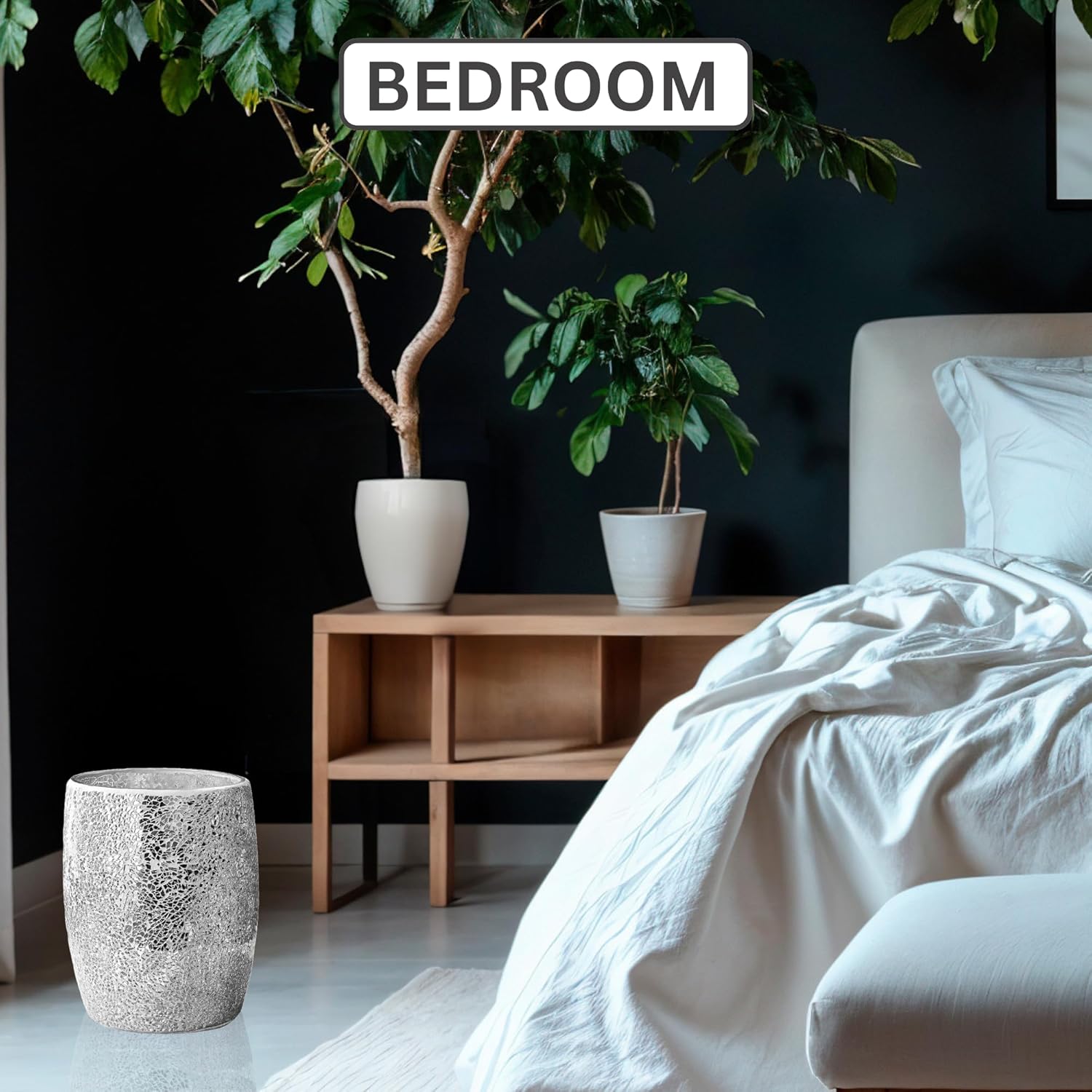 • Premium Small Waste Basket - Our decorative silver trash cans are hand-made with a beautiful mosaic glass finish for home & bath decor. A must-have in your new house is essential for a luxurious experience.