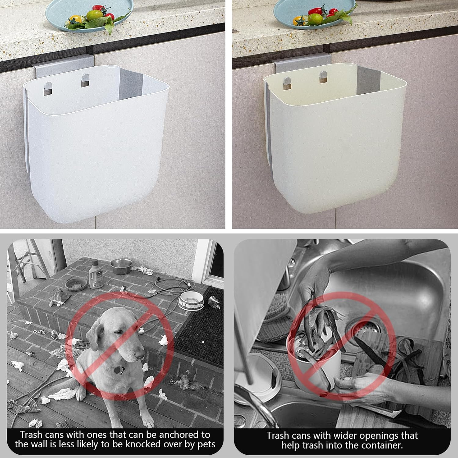 • 【Kitchen Must-Have】 Installing our hanging trash can is quick and tool-free. Just fix the hook on the back of the trash can, insert the trash bag, secure it with the pressure ring, and attach it to any cabinet door or drawer. (Make sure the door is less than 1.81 inch/3cm thick before purchase!)