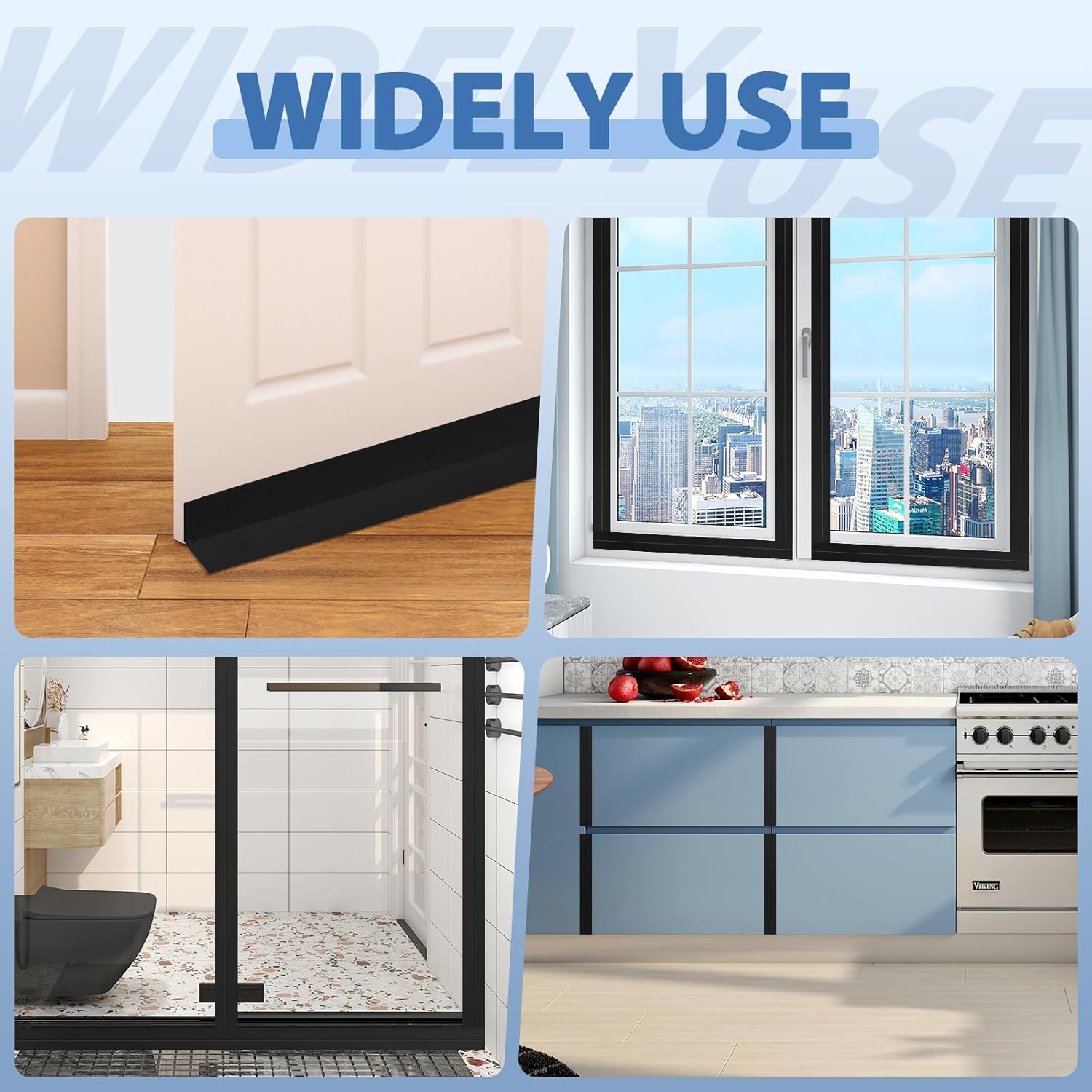 • Wide Applications: Suitable for homes, apartments, offices, garages, and even RVs. These door bottom seal strips create a tighter seal around or under your doors. They're ideal for reducing noise levels while enhancing protection to create a more comfortable living or working environment.