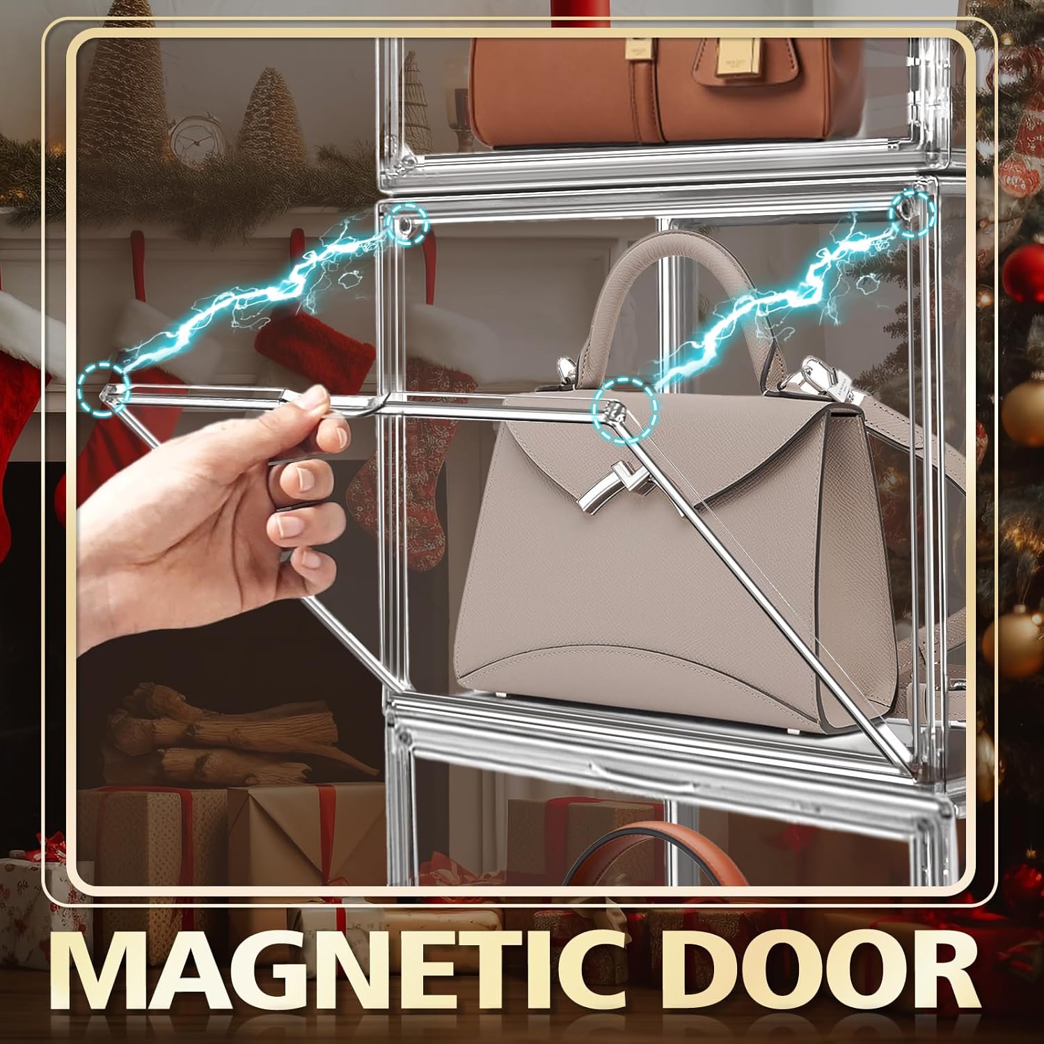4Pack Clear Shoe Box Organizer, Acrylic Display Cases for Book Cosmetic Figures Collectibles Showcase, X-Large Bag Stackable Plastic Storage Bins with Magnetic Lid