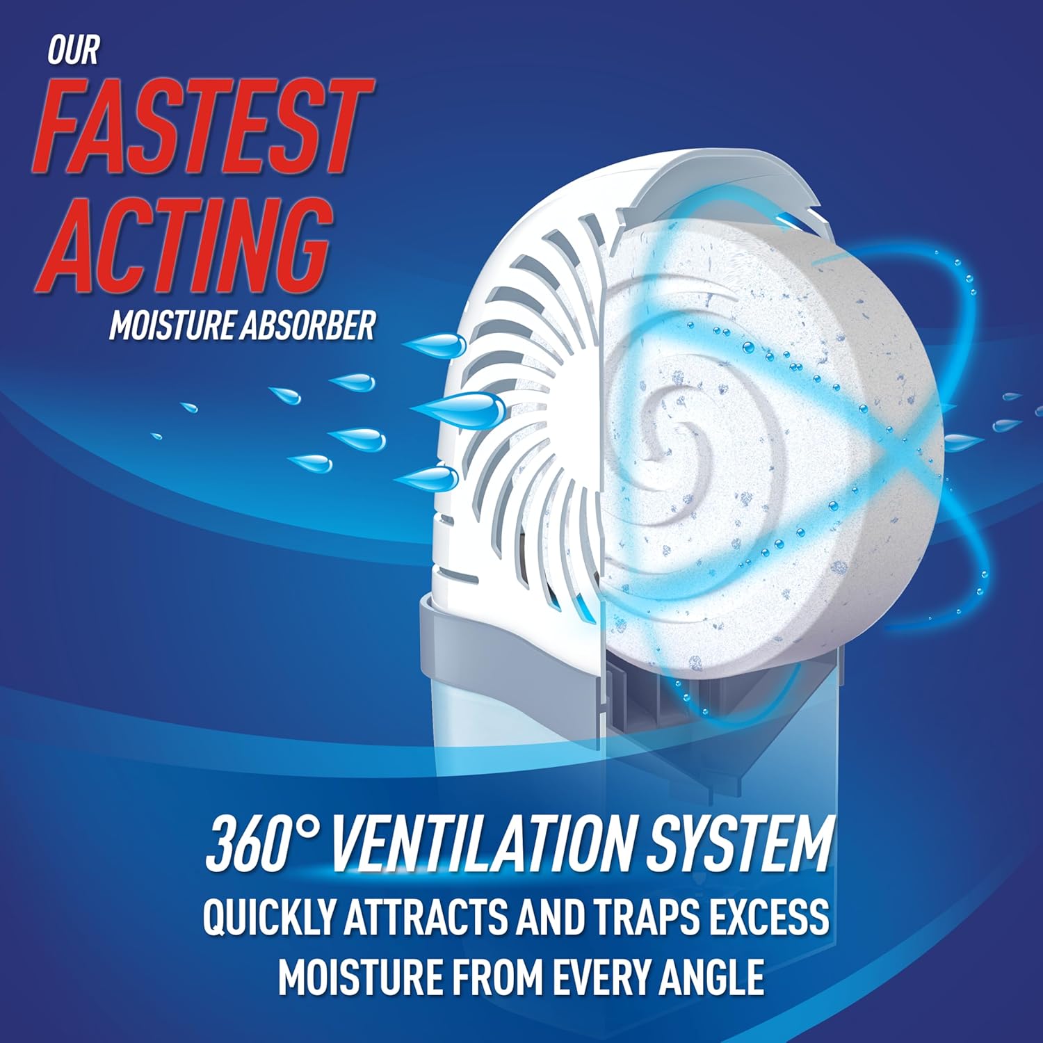 • INNOVATIVE DESIGN: 360-degree ventilation system enhances airflow and maximizes moisture absorbing surface area for a fast-acting solution. Patented time-release fragrance technology and spill-resistant design adds convenient efficiency.
