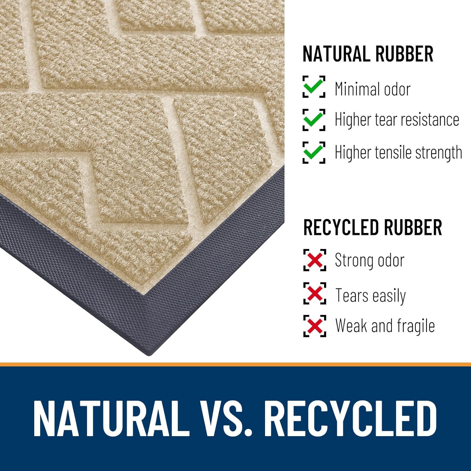 • [STURDY NATURAL RUBBER BACKING] The OLANLY heavy-duty door mat features an ultra-thin design, allowing it to effortlessly glide under most doors without jamming or curling. Crafted with a sturdy natural rubber backing, our product offers higher tensile strength, increased tear resistance, and less odor compared to synthetic rubber.