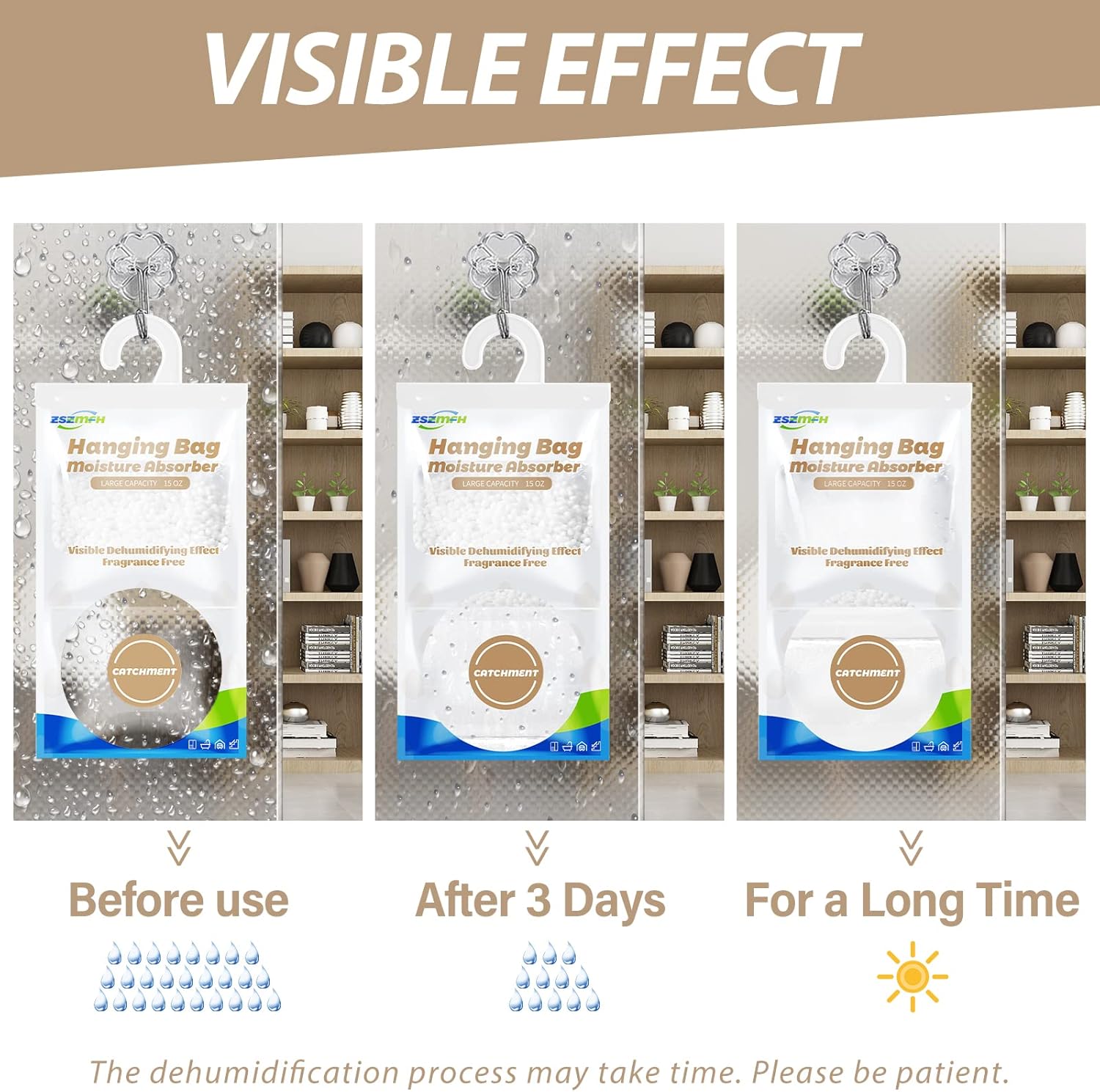 • ❤Effctive Absorbing (No Scent): Our moisture absorber hagning bag features a large capacity of 15 oz, Dehumidifier bags use Spherical calcium chloride to enlarge the area to absorb quickly,Protects clothes and items from excess moisture damage.