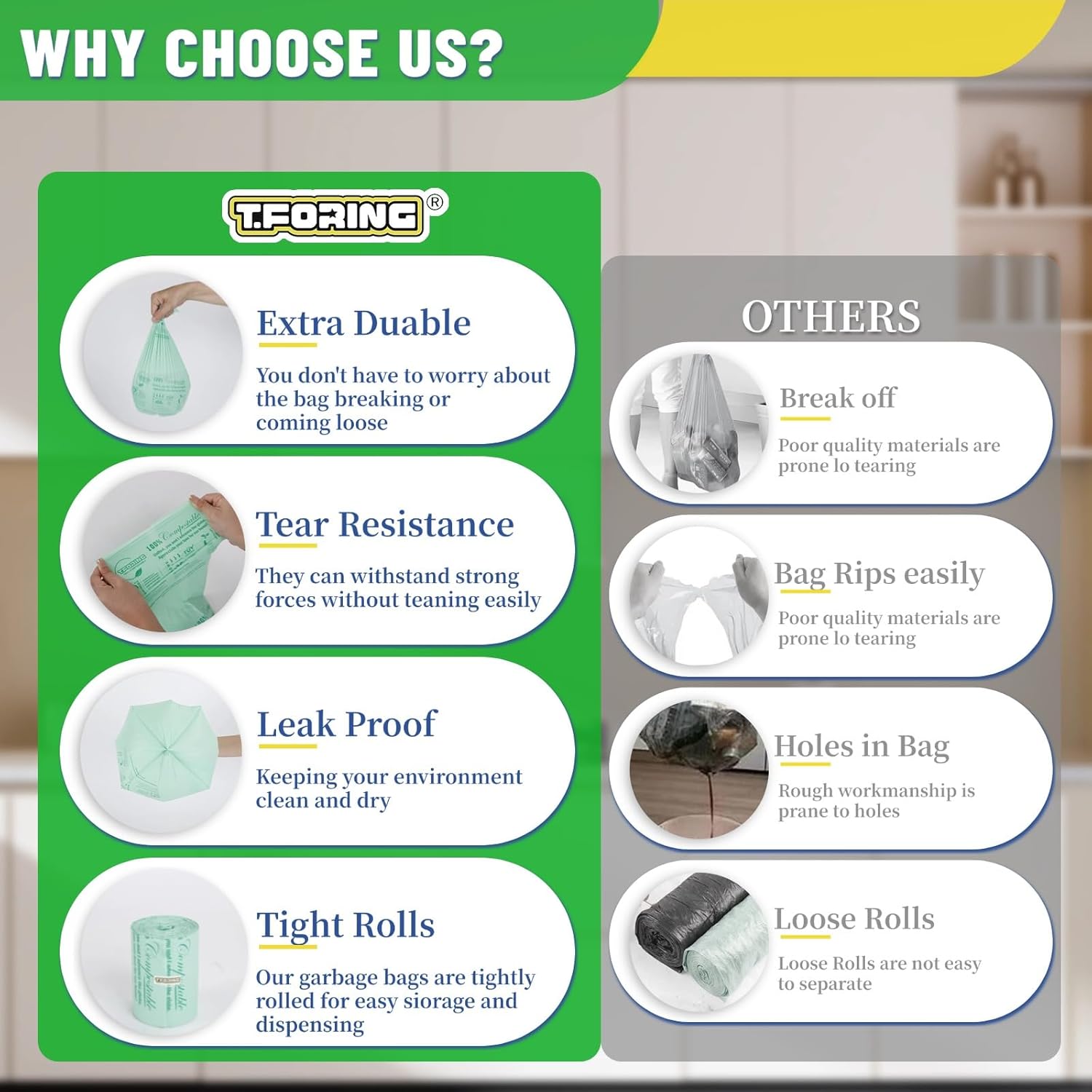 • 【Make Earth Better】T.FORING compostable bags are the ethical choice for a cleaner environment and an ECO-FRIENDLY future. Thank you taking care of our planet for FUTURE GENERATIONS by replacing plastic with our sustainably manufactured, compostable bags. Together, U ‘n’ I make Earth a better place.