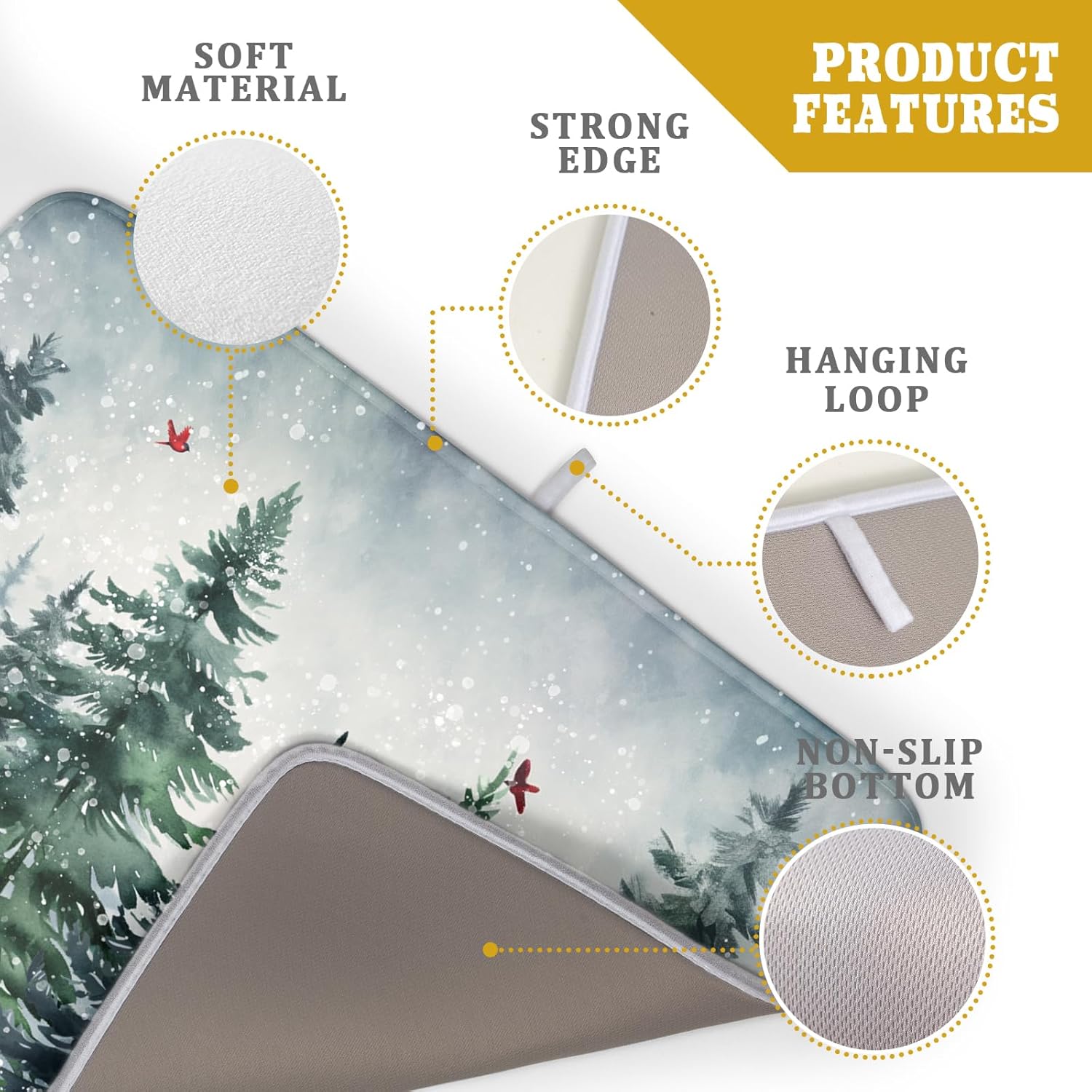 • 【Dish drying mat】The winter pine tree dish drying mat is 16x18inch/18x24inch, which is suitable for most homes and kitchen countertops while providing a smart and sharp look. Our dish drying mat is soft and durable, can be used as a drying mat, put down all sizes of kitchen tableware, also can be used as a protective pad, dish mat, cup mat, heat insulation pad for countertop for heat insulation and ironing, which can perfect hold your dishes, plates, big pots and pans.