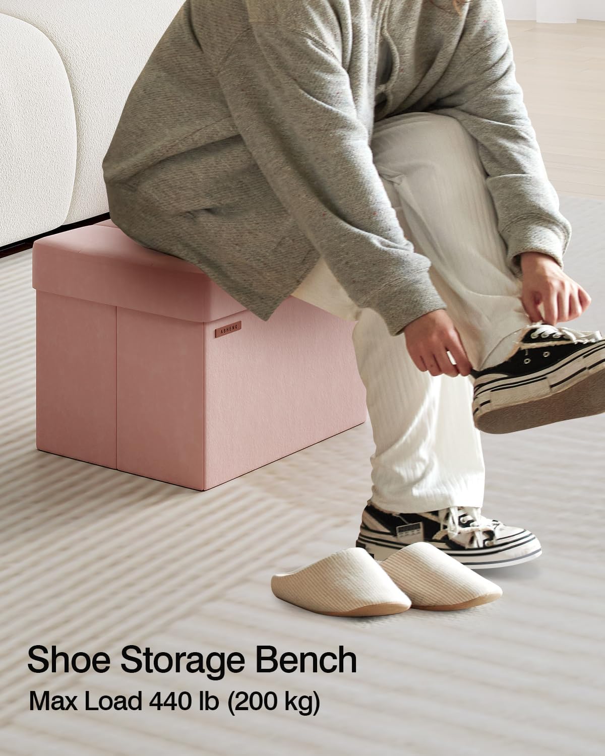 Folding Storage Ottoman, Velvet Storage Bench, Footrest, Foot Stool,for Living Room, Bedroom and Office,12.2 x 16.1 x 12.2 Inches, 200 kg Load Capacity,Jelly Pink,UASND03P