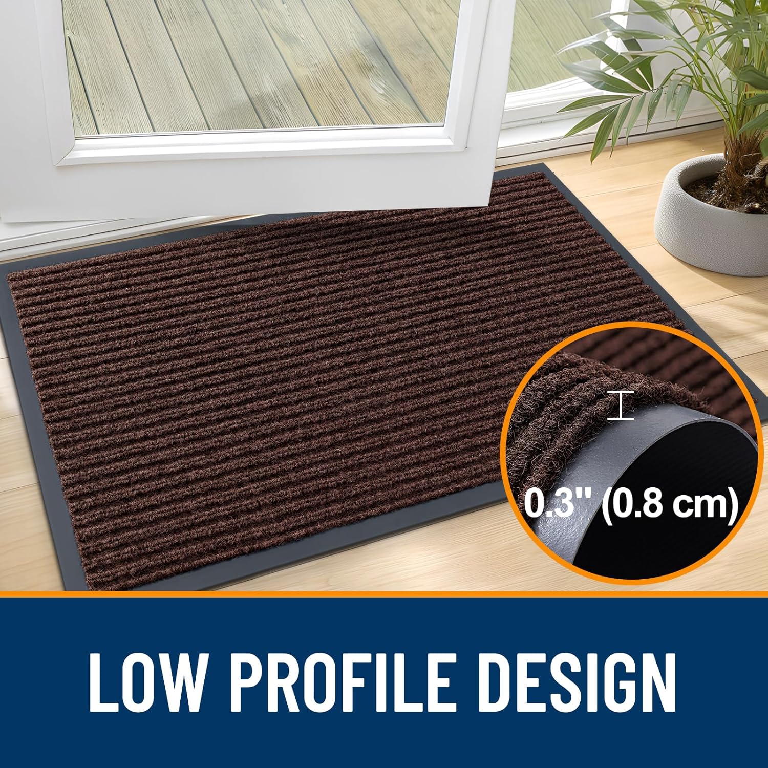 OLANLY Front Door Mat Indoor Outdoor Entrance, Waterproof Heavy Duty Doormat, Fade Resistant, Low Profile, Easy Clean Patio Porch Welcome Floor Mats for Entry, 59x23, Brown