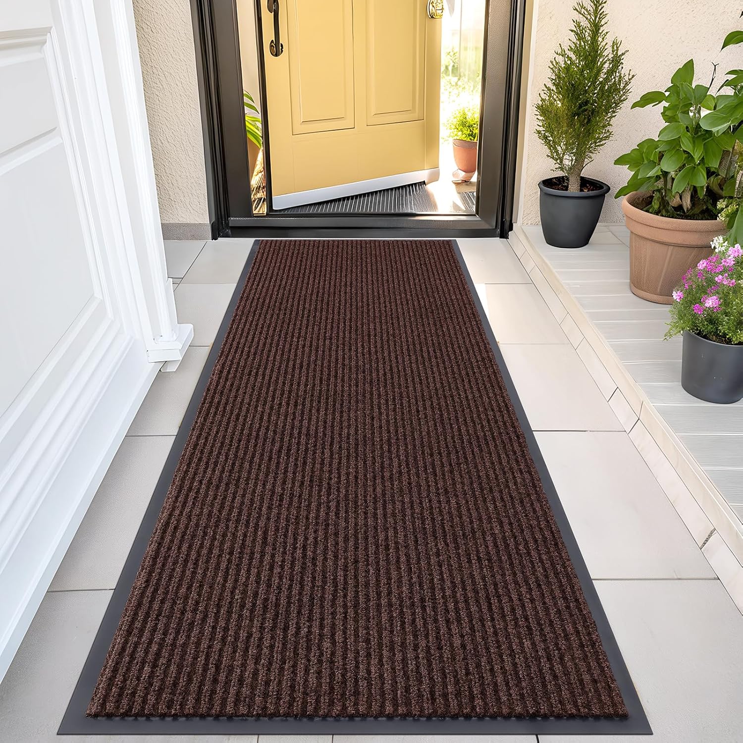 OLANLY Front Door Mat Indoor Outdoor Entrance, Waterproof Heavy Duty Doormat, Fade Resistant, Low Profile, Easy Clean Patio Porch Welcome Floor Mats for Entry, 47x23, Brown