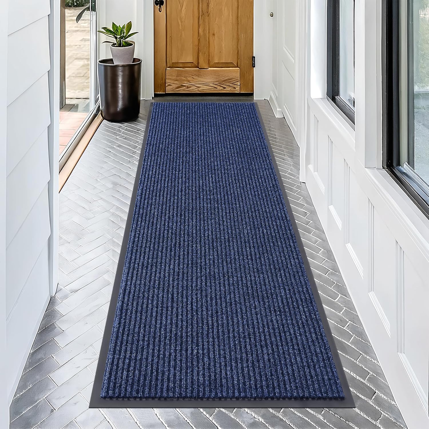 OLANLY Front Door Mat Indoor Outdoor Entrance, Waterproof Heavy Duty Doormat, Fade Resistant, Low Profile, Easy Clean Patio Porch Welcome Floor Mats for Entry, 71x23, Blue
