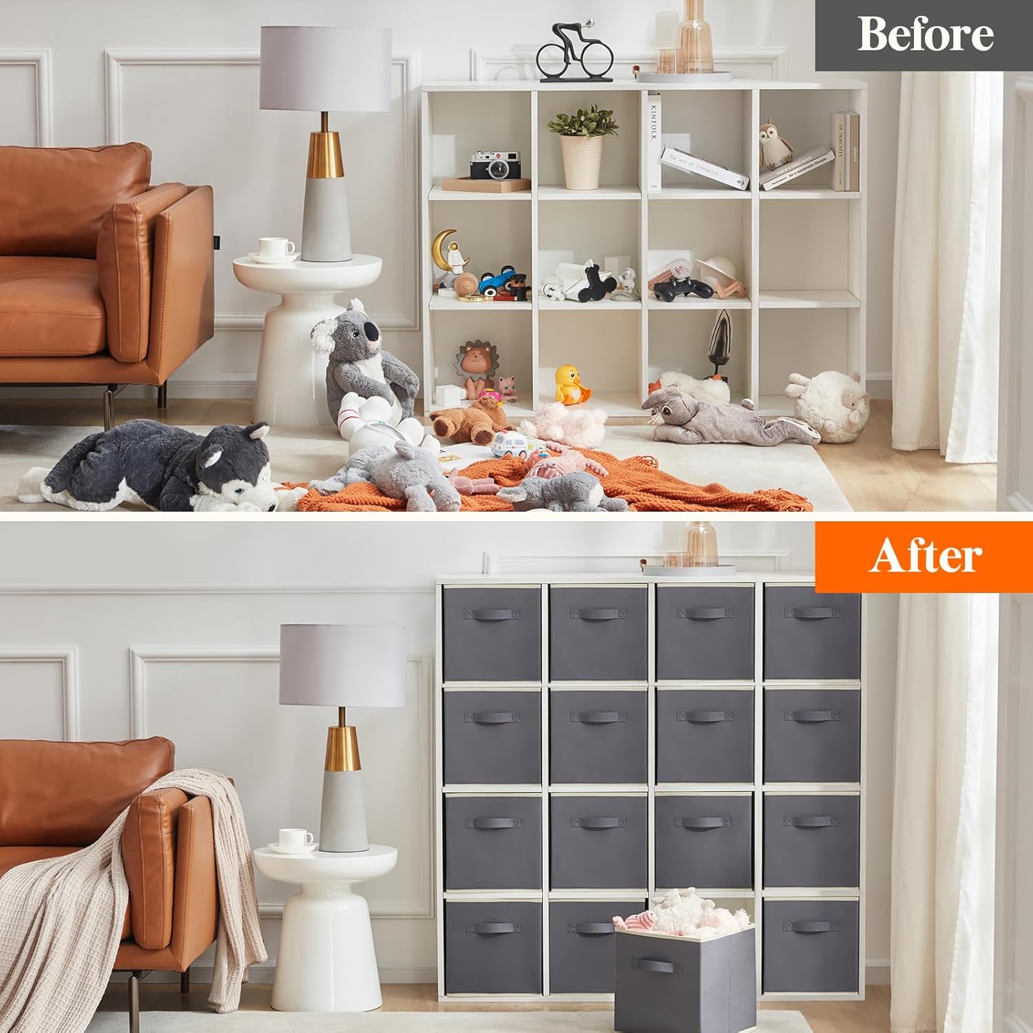 Lifewit 16 Packs Storage Cubes, 11 Inch Cube Storage Bins, Foldable Decorative Fabric Storage Baskets for Organizing Home Organizers with Handles for Shelves, Closet, Gray