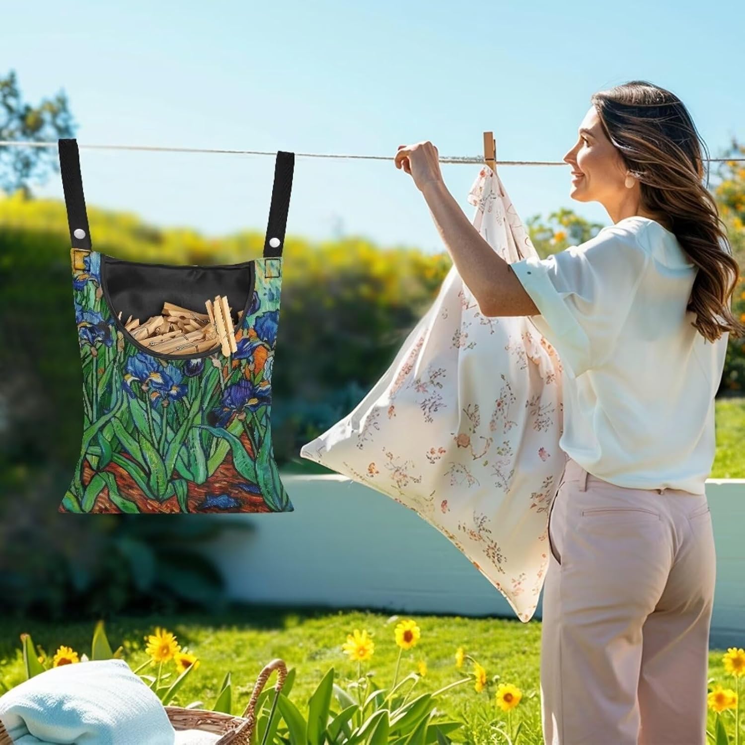 Floral Print Clothespin Organizer Bag Fashion Clothespin Storage Organizer with Large Opening Rotatable Clothespin Storage Bag Laundry Clothespin Bags, Clothespin Storage Hanger Bag