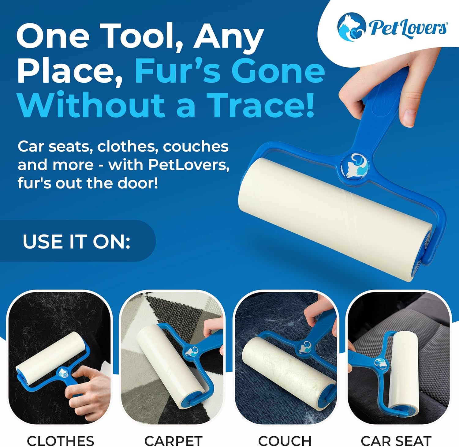 • With PetLovers extra sticky adhesive, your lint roller doubles as a grooming tool that noticeably removes more hair, dust, and lint from your pets, furniture, clothing, and carpet