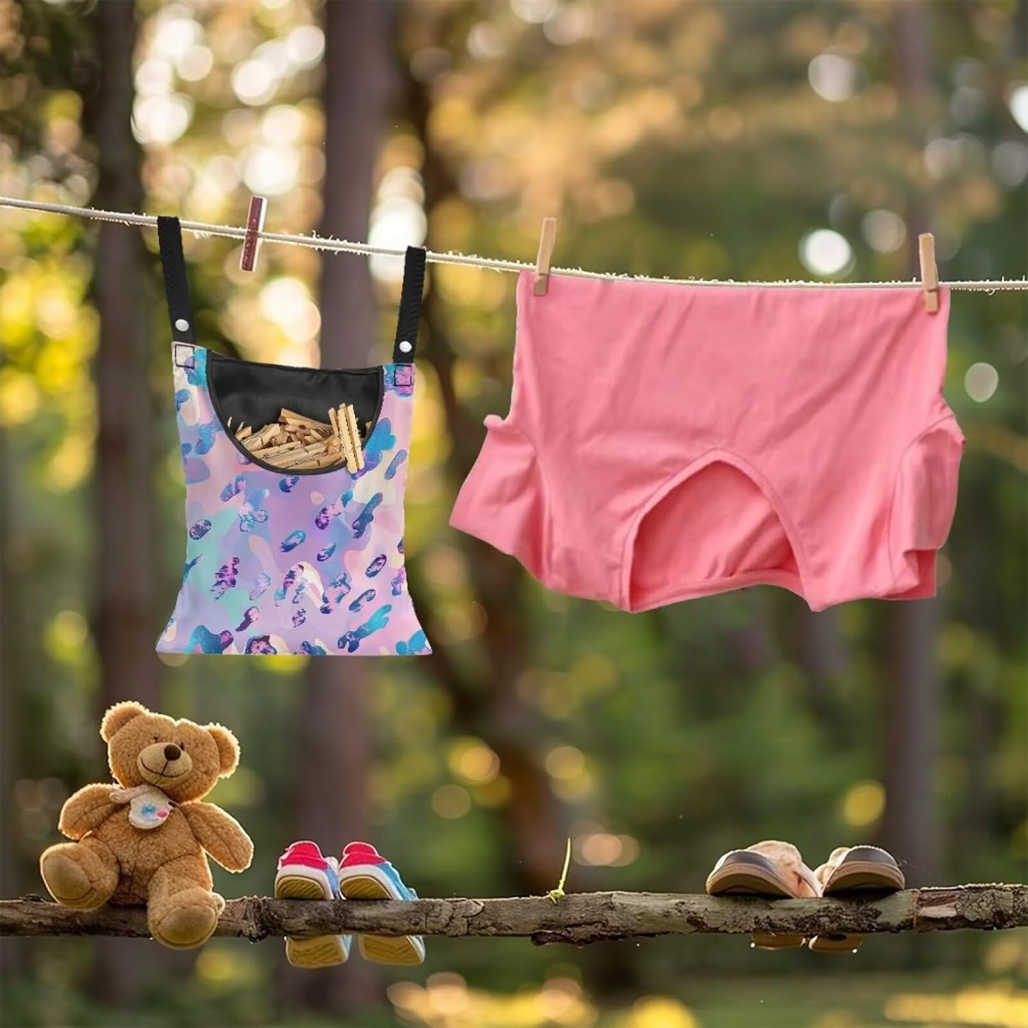 Leopard Print Clothespin Pouch Clothespin Bag with Hanging Hook Waterproof Clothes Pin Hanging Bag Space-Saving Clothespin Storage Organize Clothespin Bag for Clothesline Outdoor