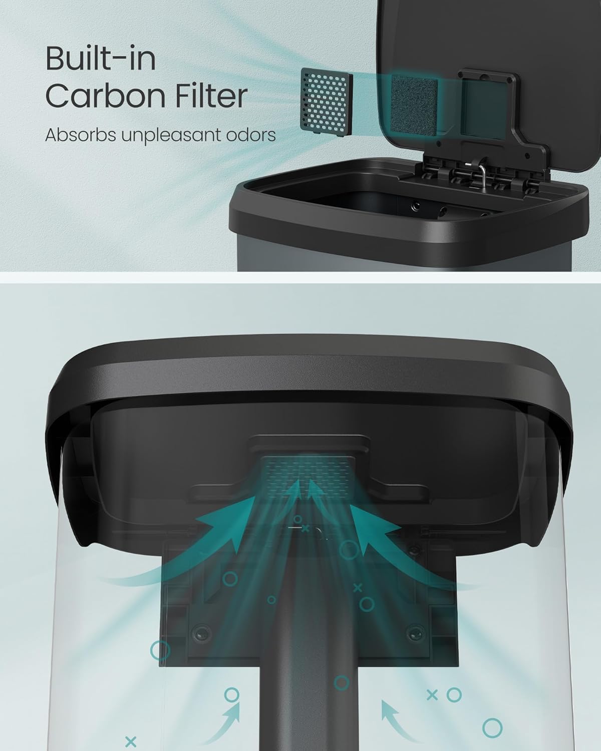 • [Thoughtful Detailing] The carbon filter in the lid helps absorb unpleasant odors, keeping your kitchen smelling fresh. Included are 15 liner bags (16-18 gallons) that perfectly fit this kitchen can