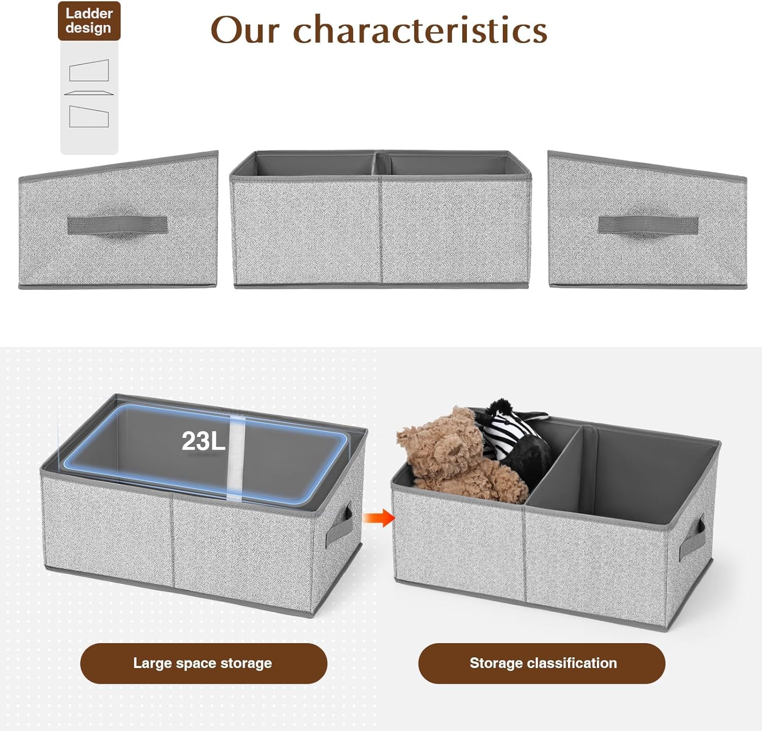 • 【Foldable & Detachable】These fabric bins can be easily folded into a flat state, saving space when not in use. These baskets for closet organization have partitions, and you can use the fabric storage bin to store clothes and daily necessities without confusion. Get rid of the regular cardboard box