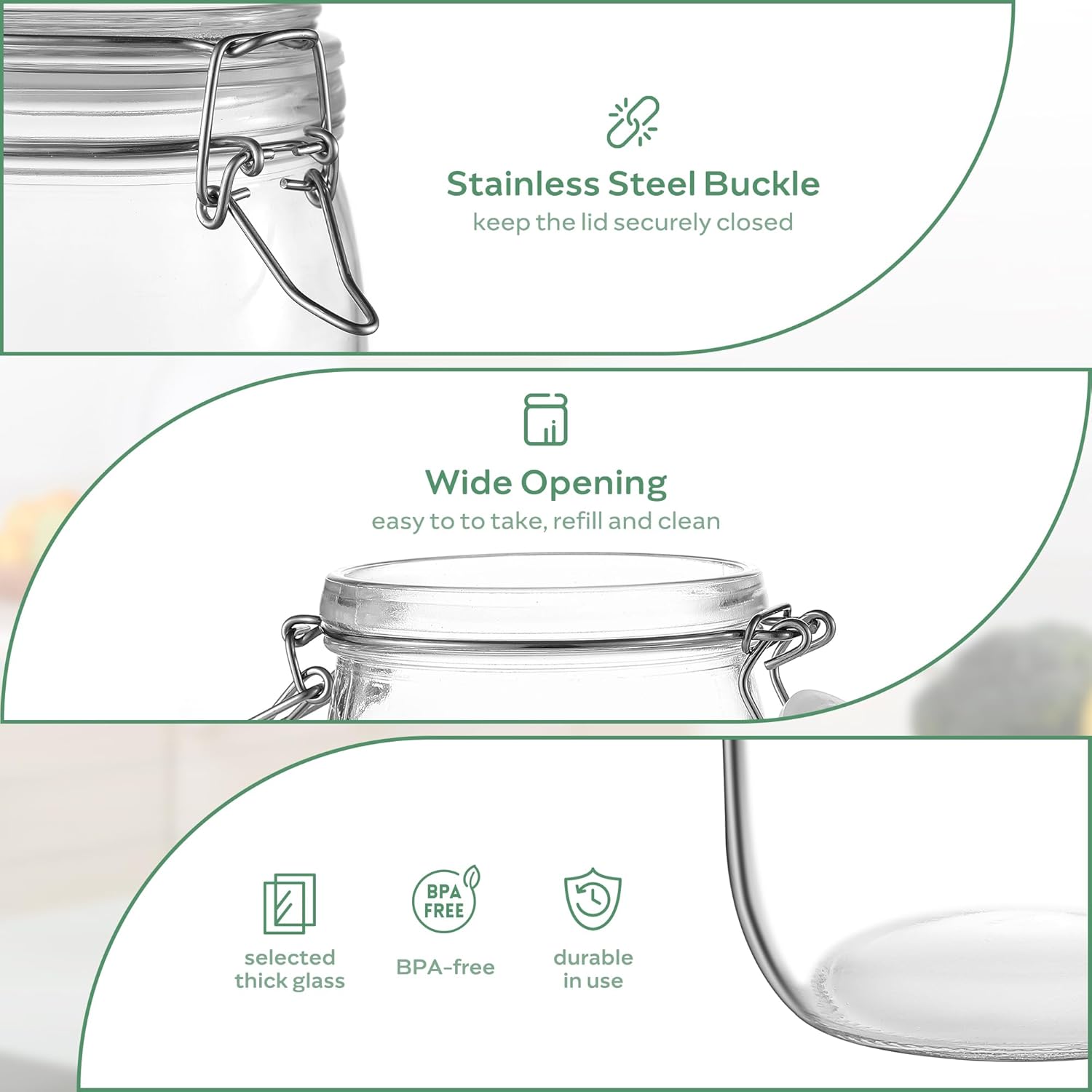 • Wide Applications: Our airtight storage jars are very versatile and can be used not only to store a wide variety of foods such as pasta, coffee beans, cookies, candy and spices, but also to pickle your own fruits and vegetables