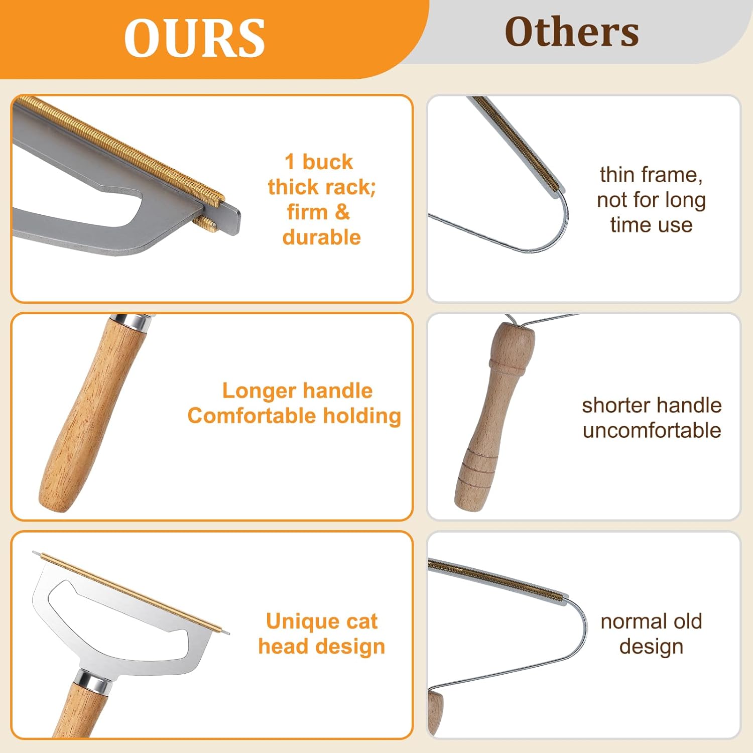 • Built to Last: Unlike flimsy alternatives, our pet hair remover features a robust steel plate(1 buck thick), an exclusive cat design, and longer than others ergonomic handle. The unique round edge design removes animal fur, lint, pills without damaging the fabric. This combination ensures durability, making it a long-term unmatched solution for pet hair woes.