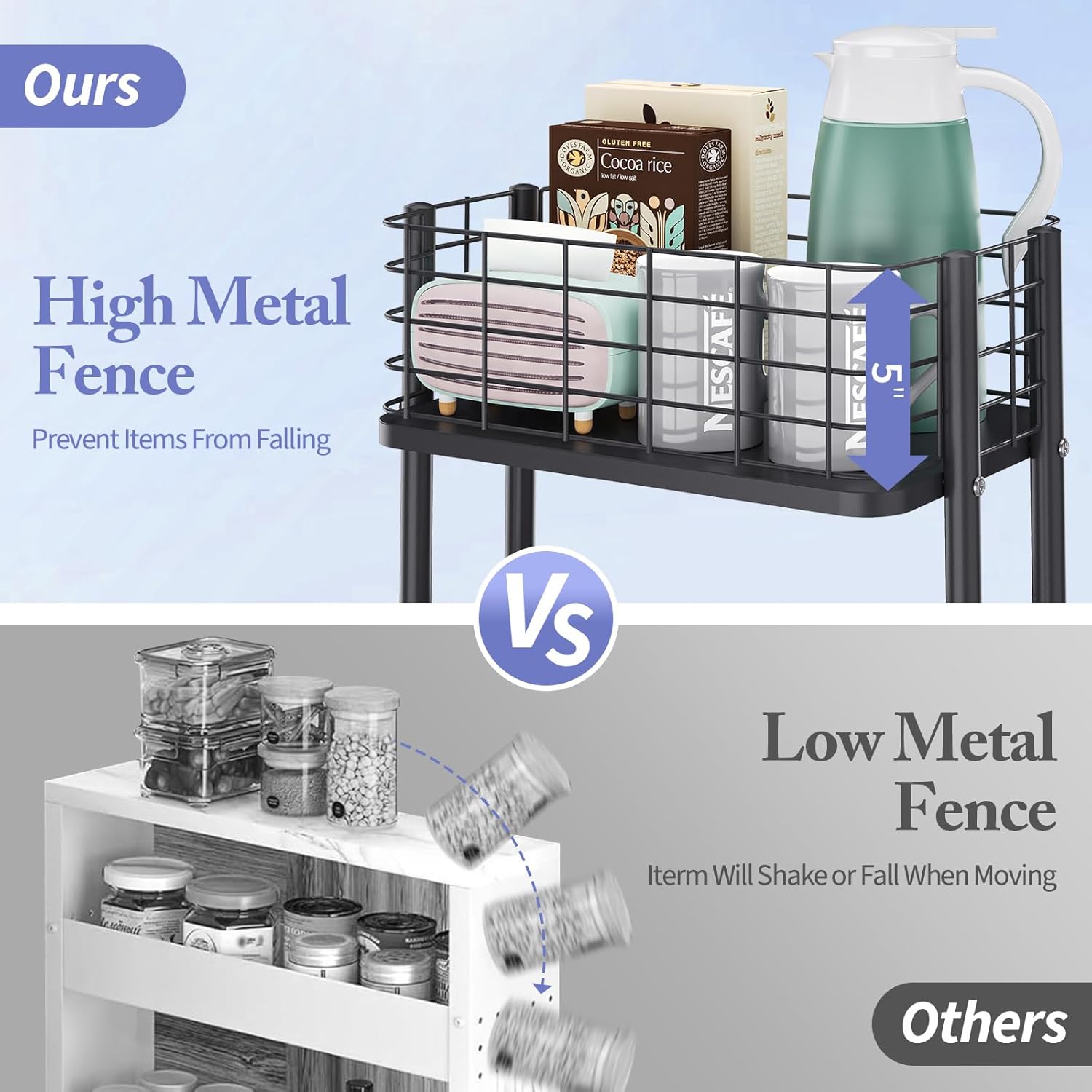 • 【HIGH MESH GUARDRAIL Design】The rolling cart features a high mesh design, providing added height to prevent items from falling off. This utility cart ensures secure storage for all your items. You can display your photos on top of the mesh to add fun to daily life.You can discover more storage solutions and interesting ideas in the process of using this cart.