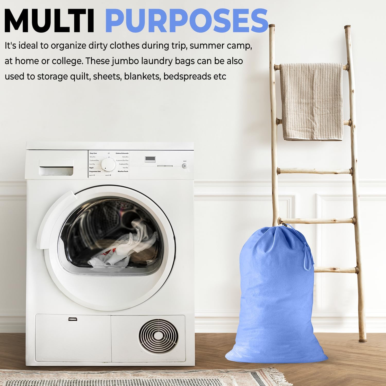 2 Pack - Extra Large Cotton Laundry Bag, Heavy Duty Large Laundry Bags 24 x 36 inch XL Drawstring Travel Organizer Bag Fit Hamper Basket Camp (BLUE, Pack of 2)