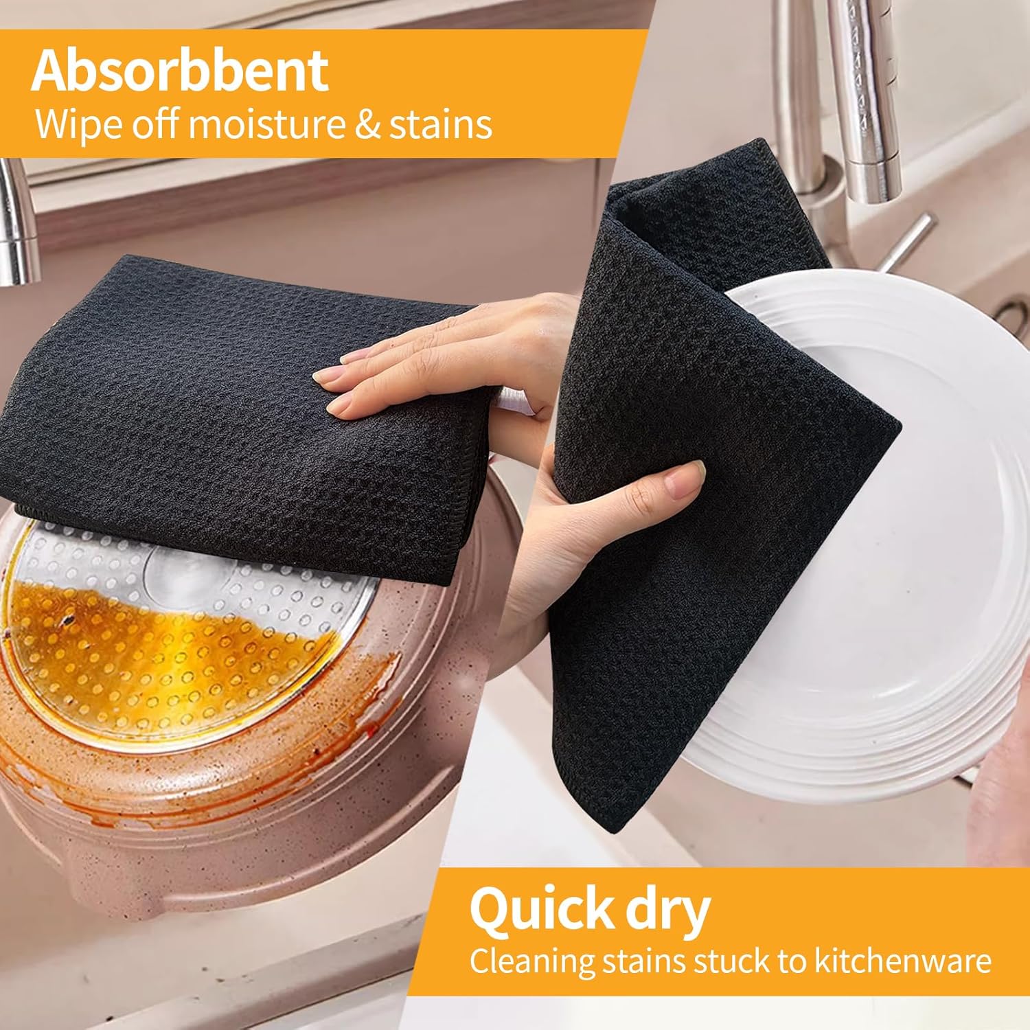 • VERSATILE DISH TOWELS: You can pretty much use them on anything in the kitchen - stove, microwave, granite countertops, sink, and even the dining room table, especially for heavy duty kitchen cleaning