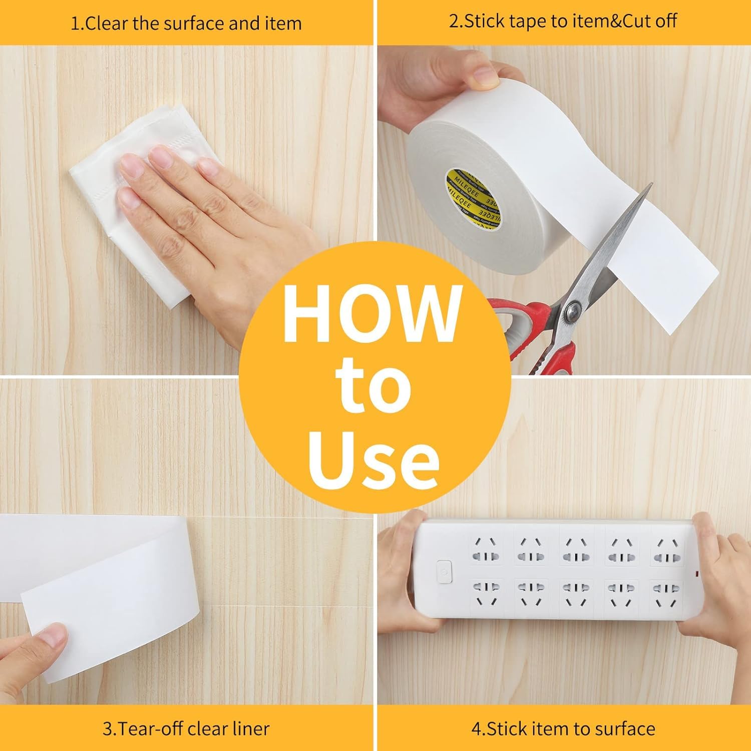 • EASY TEAR TAPE,EASY TO USE- Easy tape double sided is tearable by hand and easy removable.Before applying 2 sided tape heavy duty, make sure surface is clean and dry,then rip or cut double sided tape strips into desired length, then apply thin double sided adhesive tape onto the surface,peel off yellow paper backing(release liner),put items to double tape resistant and press firmly.