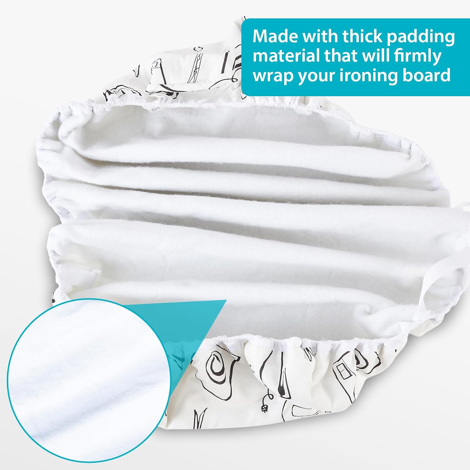 • SUITABLE FOR STANDARD IRONING BOARD: This ironing board cover designed for standard board to 54 x 18 inches. Suitable for standard size ironing boards with a width of 16 inches to 18 inches and a length of 52 inches to 54 inches. Note: Ironing board is NOT included