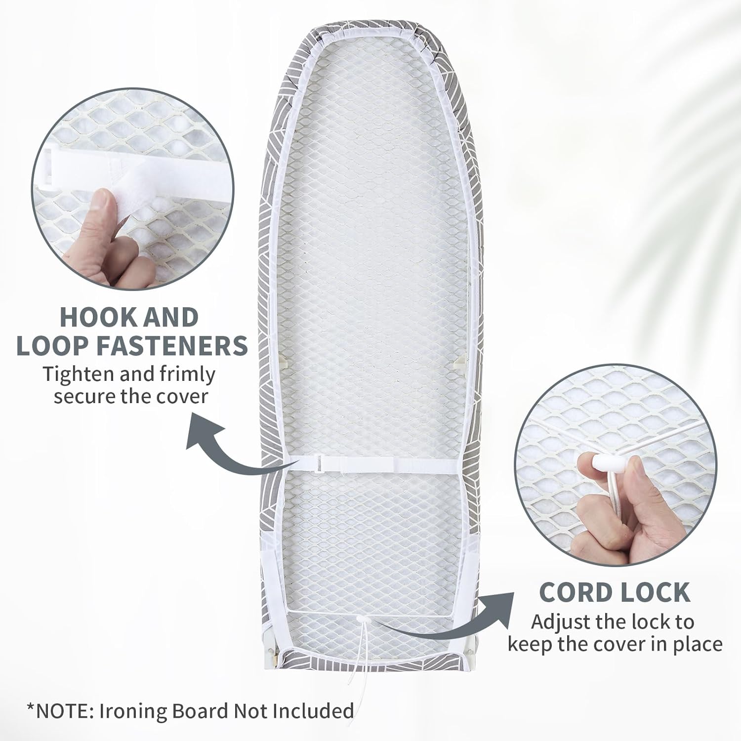 • SECURE ON YOUR IRONING BOARD TIGHTLY: What you receive is an unshaped cover, you need pull the rope on the side to shape the nose pocket of the cover. The adjustable rope on the edge can tighten and straighten the ironing board cover to ensure that it is not easy to move or slide
