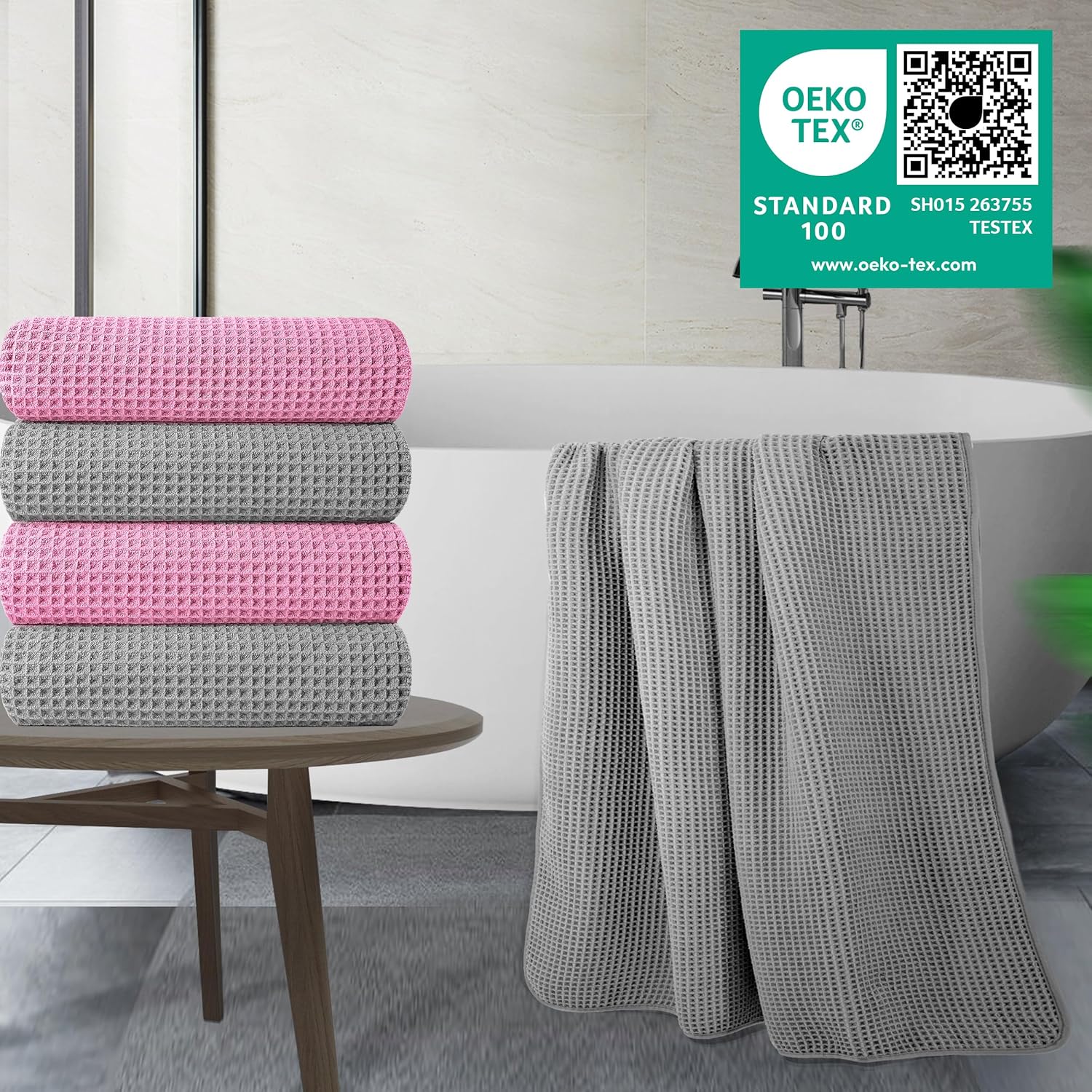 • Experience the super soft feeling of premium microfiber bath towels against your skin without the heft and bulk; unlike traditional towels you simply pat yourself dry not wipe; OEKO-TEX Standard 100