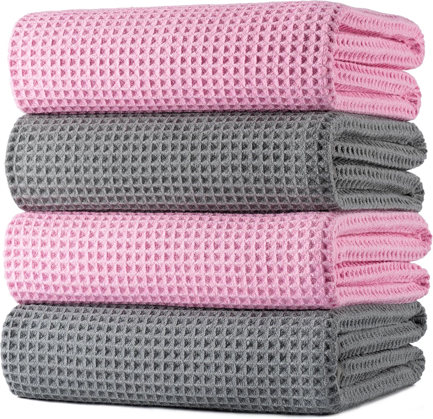 POLYTE Microfiber Oversize Quick Dry Lint Free Bath Towel, 60 x 30 in, 4 Pack (Waffle Weave)