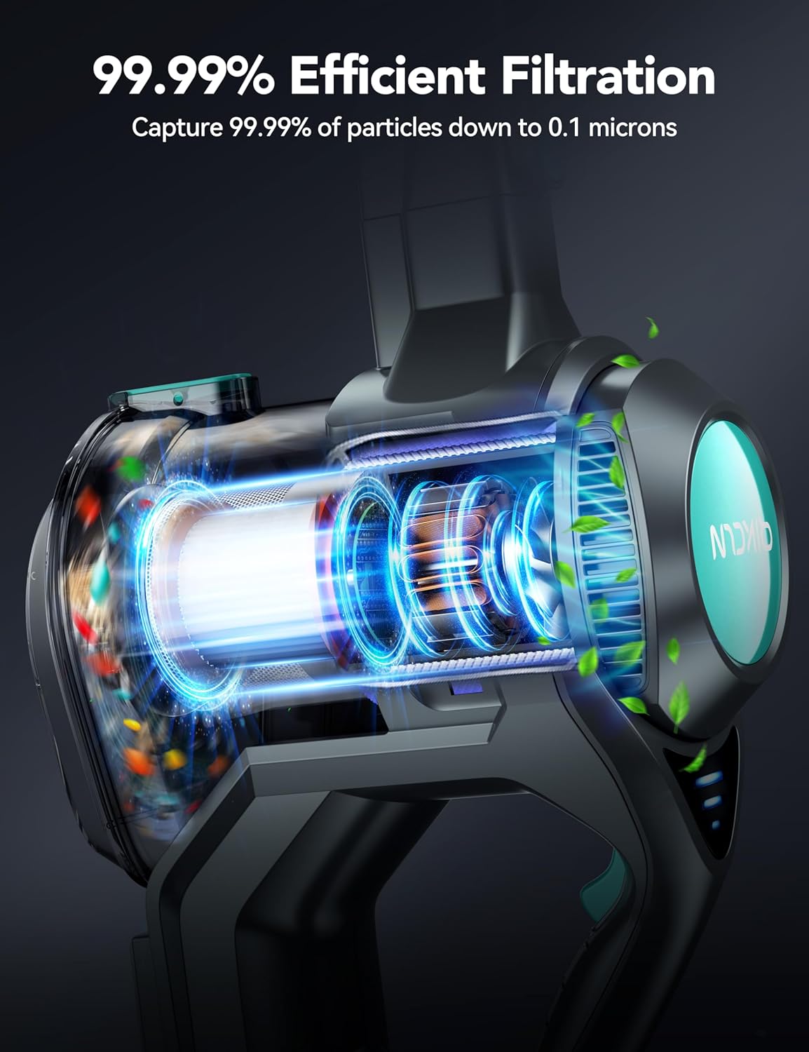• Ideal for Pet Hair, Hardwood Floors, and Carpets: This rechargeable stick vacuum is specifically designed to tackle pet hair, hardwood floors, and carpets. Whether you have furry friends at home or multiple flooring types, this vacuum cleaner is an ideal choice. Experience hassle-free cleaning like never before with QikCln cordless vacuum cleaner