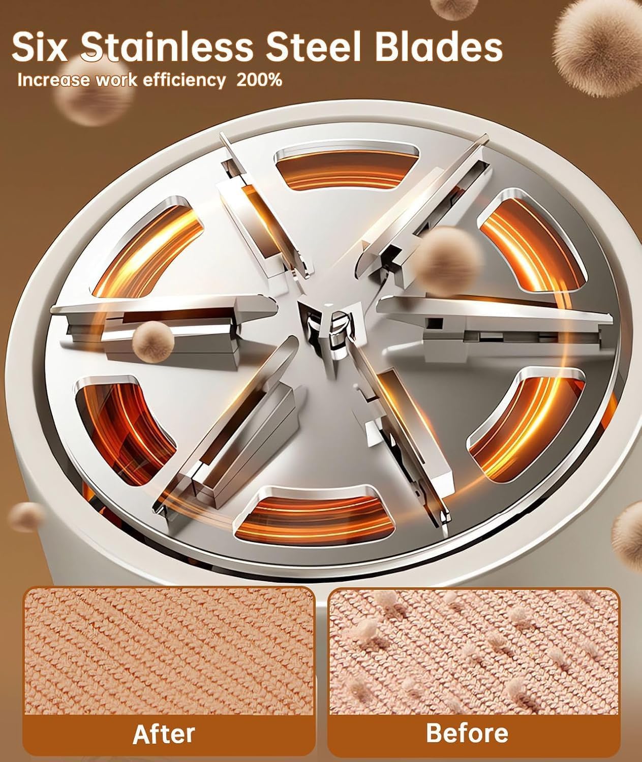 • Efficient Fabric Shaver for Clothing : This fabric shaver features a high-strength stainless steel honeycomb mesh cover and an upgraded 6-blade design. With an 8000rpm motor and efficient suction, it swiftly removes lint, fuzz, and pilling from clothes and furniture, keeping fabrics smooth and fresh.