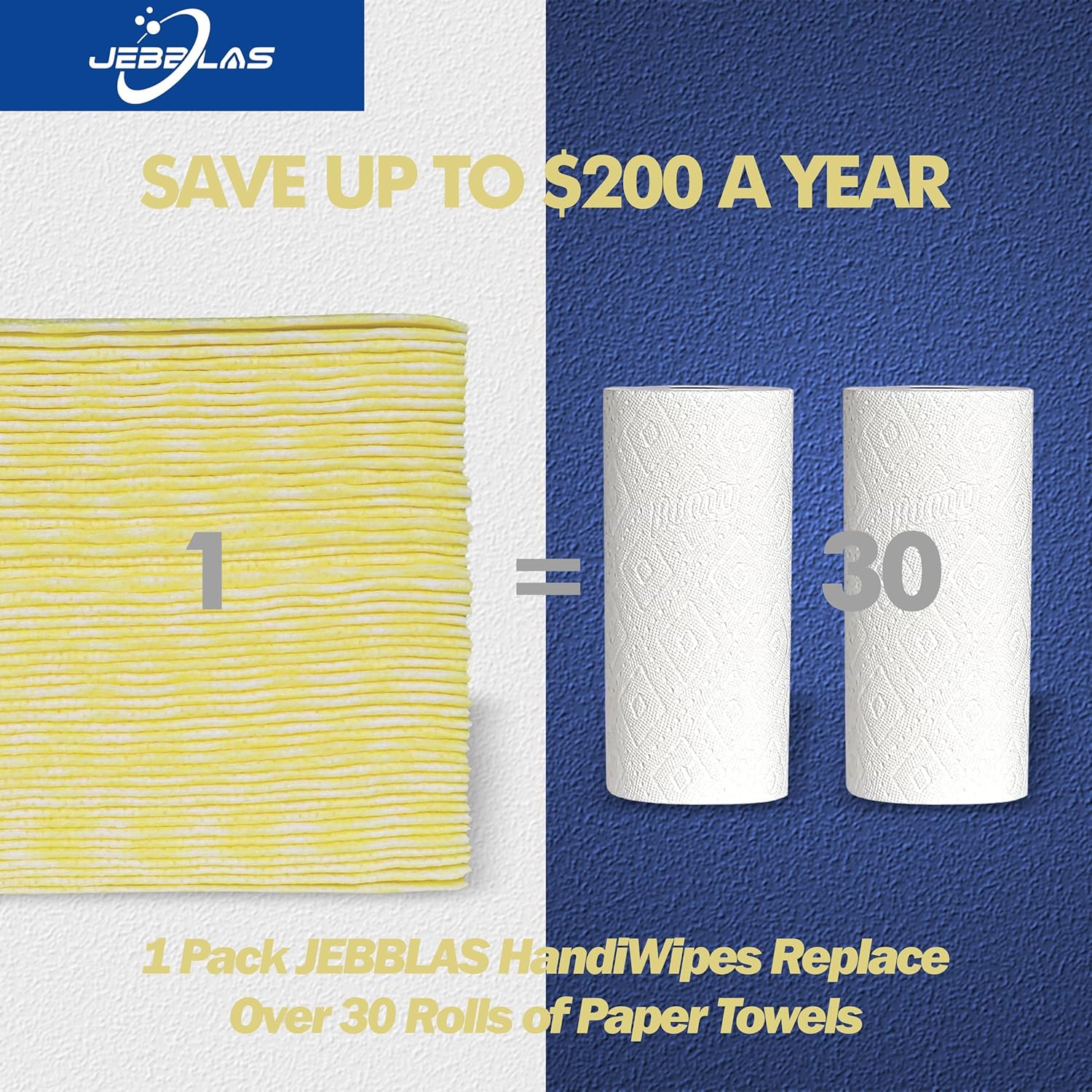 JEBBLAS Handi Wipes Reusable Cloths Dry Cleaning Cloths Dish Towel Dish Cloths Handy Cleaning Wipes,Pack of 50, Yellow