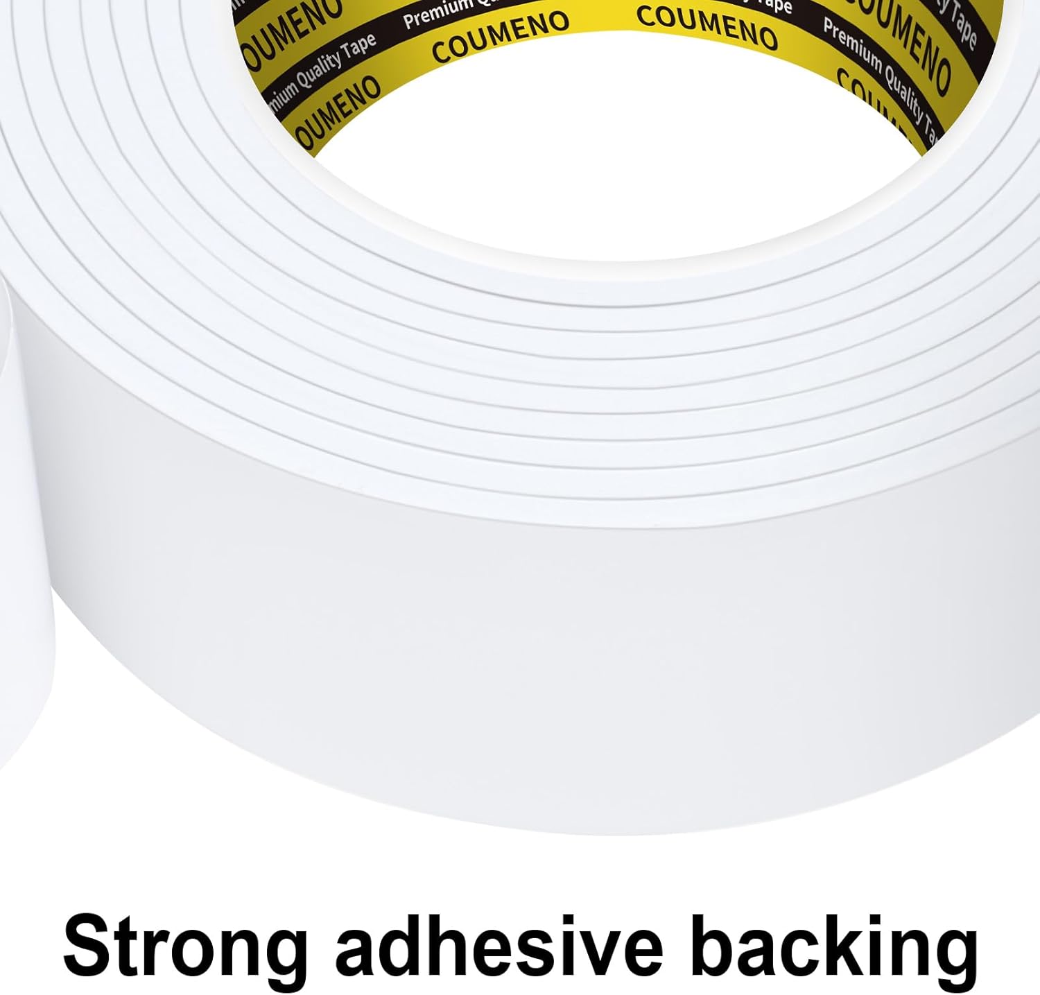2 Pack Single-Sided Adhesive White Foam Tape 1.2inX16.4FT Single-Sided Sealing Strip Foam Pad Sponge Tape Window Weatherproof, Self-Adhesive Insulation Sealing Tape