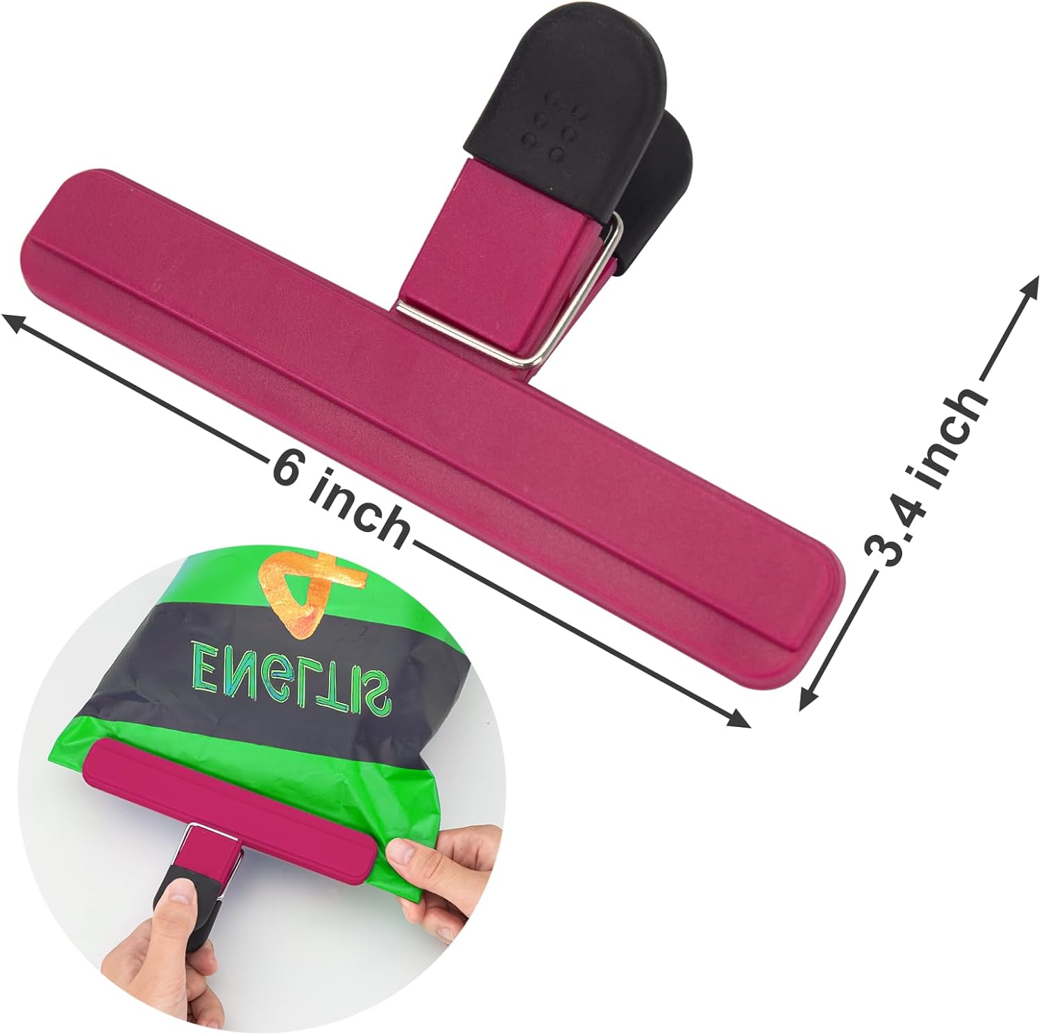 • 【Packing List】You will receive 6pcs large snack clips, size: 6 x 3.5 Inch; there are 6 colors in total: rose red, pink, purple, blue, green, orange, multiple colors are easy to distinguish sealed food