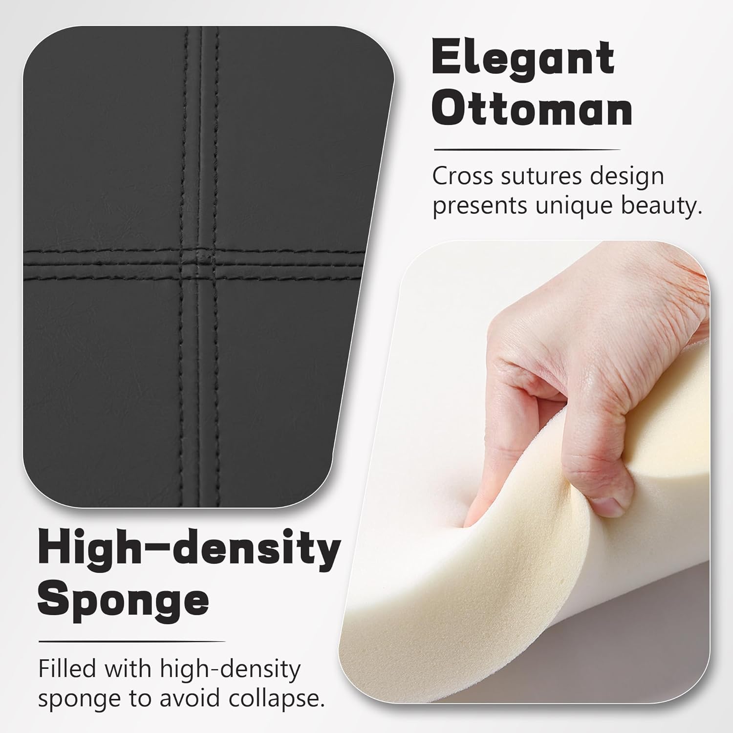 • Exquisite Design: PU leather fabric and hand-stitched top design gives this ottoman coffee table an elegant appearance. There is enough high-rebound sponge inside the top, which keeps the ottoman full and beautiful. Removing the things from top will not leave ugly indentations