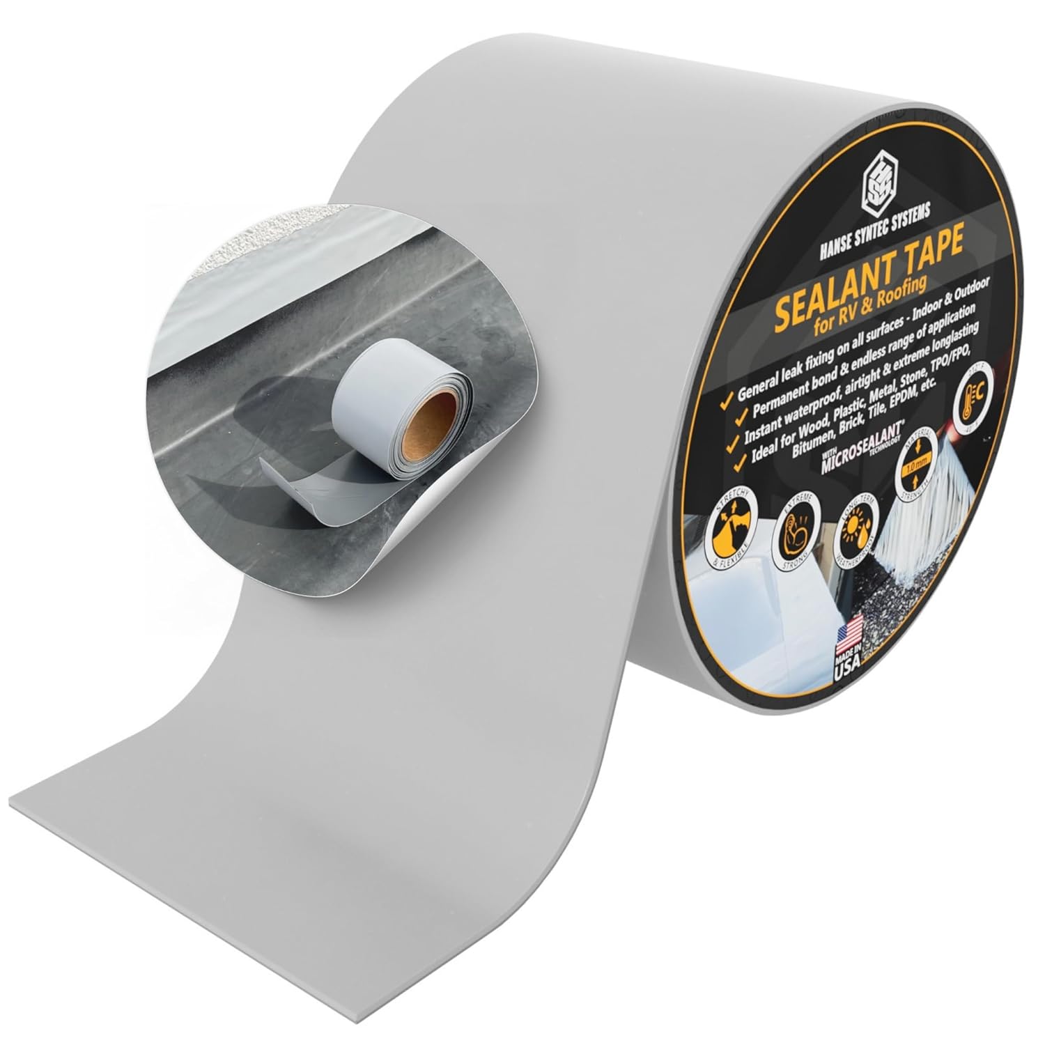 HSS Sealant Tape with MicroSealant - Waterproof Commercial Roofing Tape for Roof and RV Repair - UV- & Weatherproof - Grey - 6 inch x 25 ft.