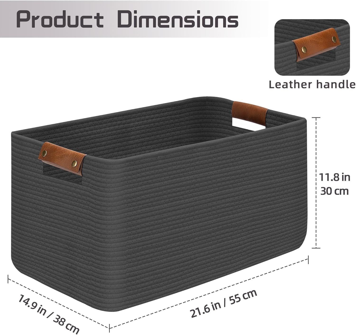 • Decorative & Versatile: Pure Natural Material Elevates Any Space - Laundry, Toys, or Blanket Storage Solution.The elegant leather handles not only take care of your hands but also add a distinctive highlight to our large baskets.
