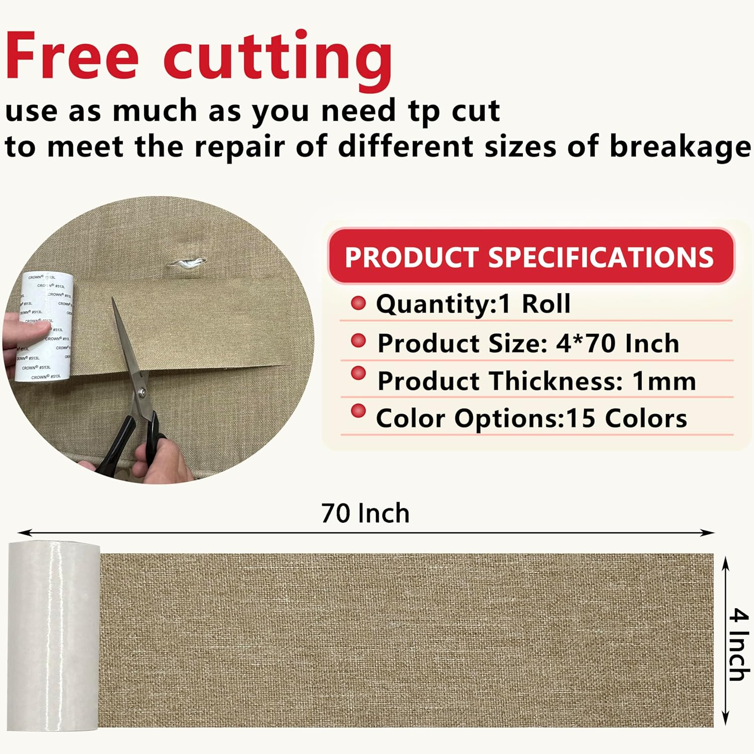 • STRIP SPECIFICATION, CUTTING FLEXIBLE:With how much to cut how much, perfect repair of various sizes of damaged area. Simple and convenient operation, fast repair furniture in 1 minute, paste the old sofa can be used as a new sofa, sofa repair patch with good repair effect at the same time can maintain the furniture beautiful