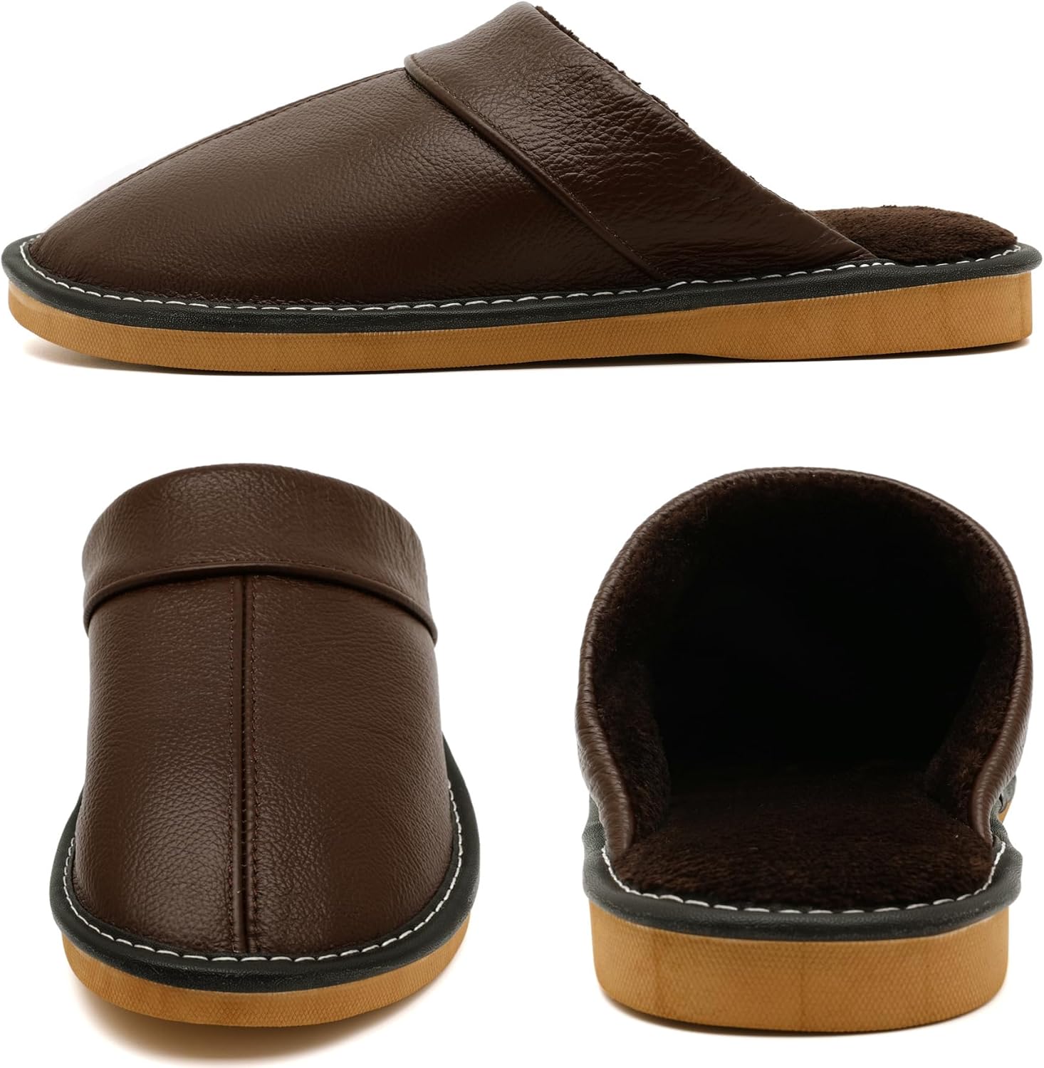 • 【Premium Material】The upper of these leather slippers is covered by soft and breathable genuine cattle hides.