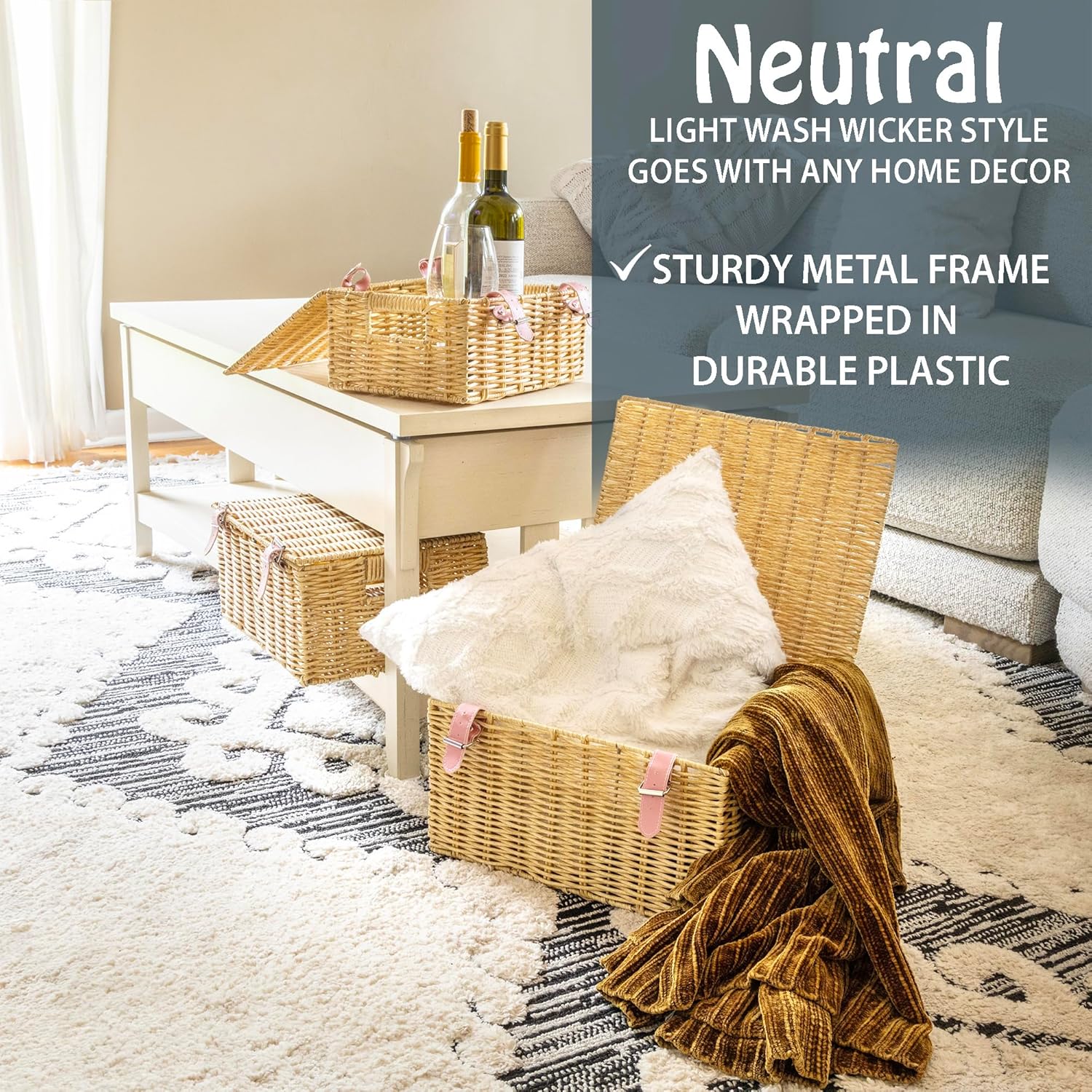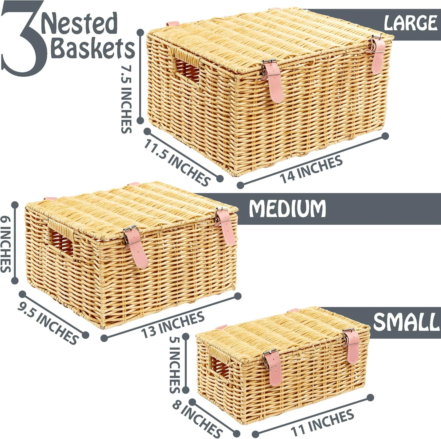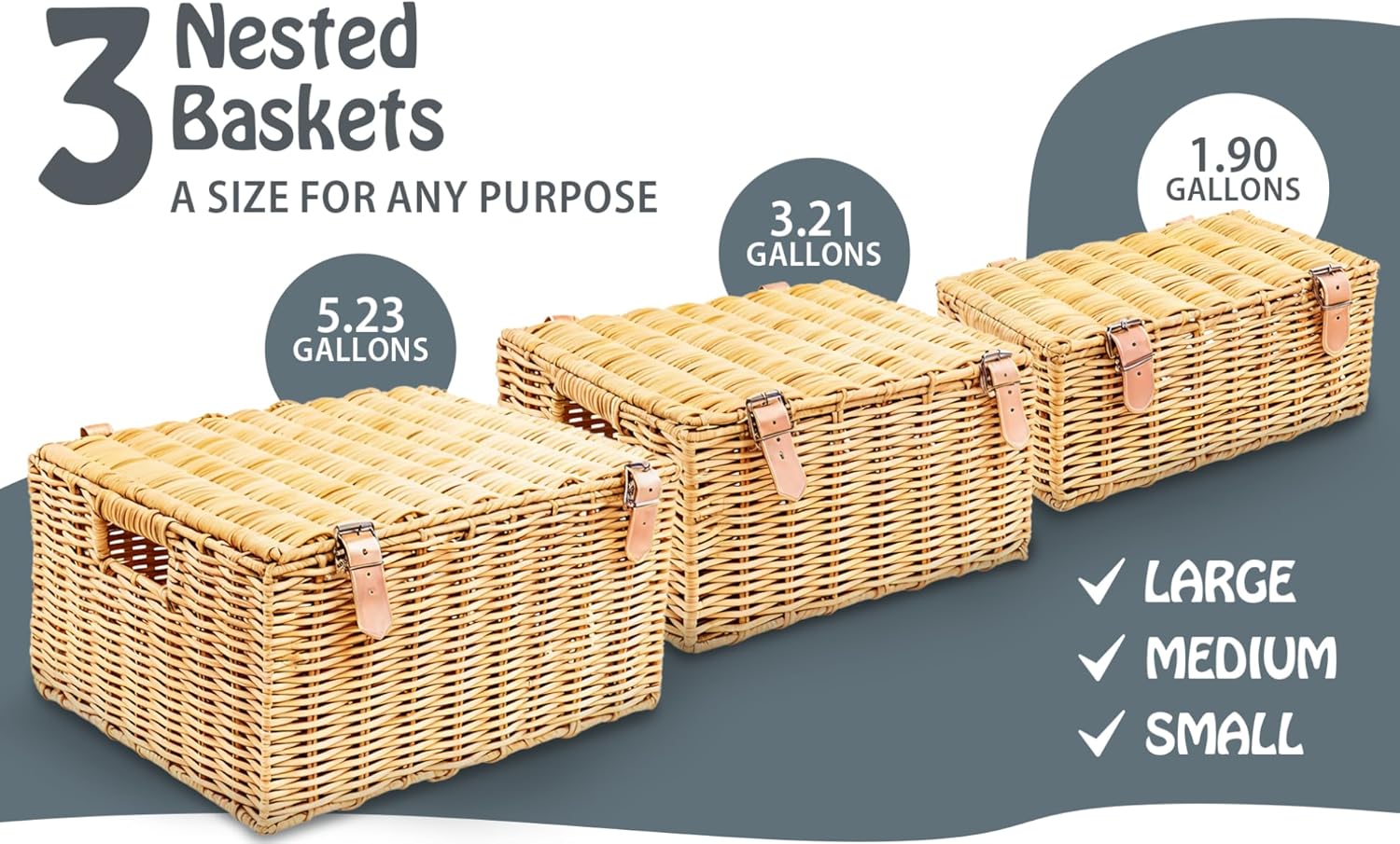 Wicker Storage Baskets with Lids – Set of 3 (Large, Medium, Small) for Organizing Clothes, Toys, Books – Stackable Basket with Lid for Bedroom, Nursery, and Home Decor