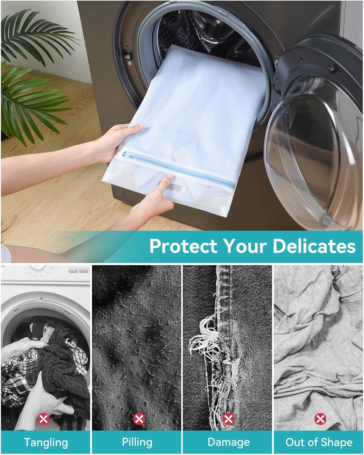 • PROTECT CLOTHES: Our lingerie washing bags for laundry can offer a reliable protection for baby clothes, lingerie, bras, underwear, socks, silk and other delicates in the washer or dryer, saving them from getting tangled, deformed or damaged, while also greatly reducing the risk of colors bleeding and extending the life of your clothes