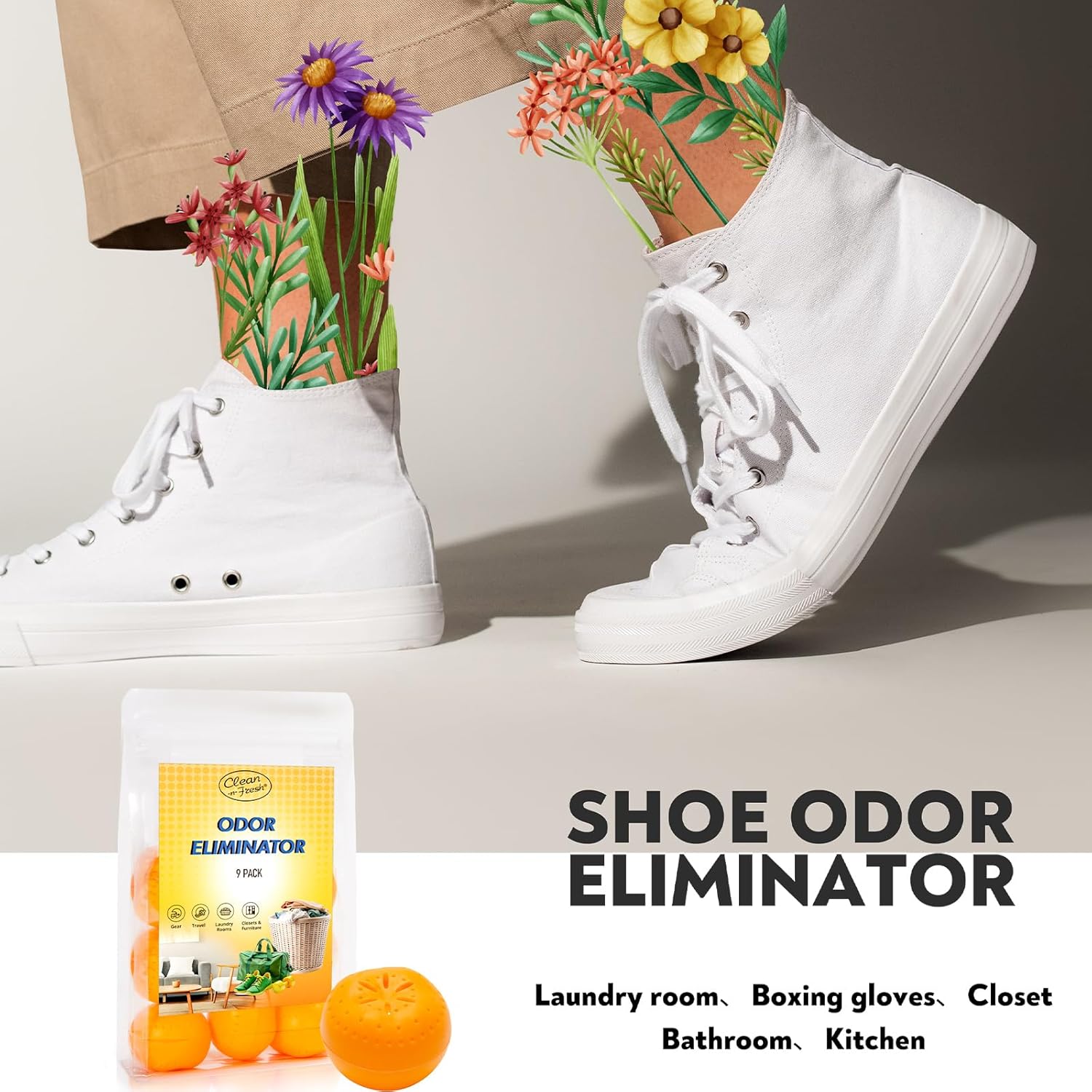 9 Pack Baking Soda Deodorizers, Shoe Deodorizer Balls, Air Freshener for Home, Odor Eliminator for Closets Bathroom Pets, Up to 180 Days