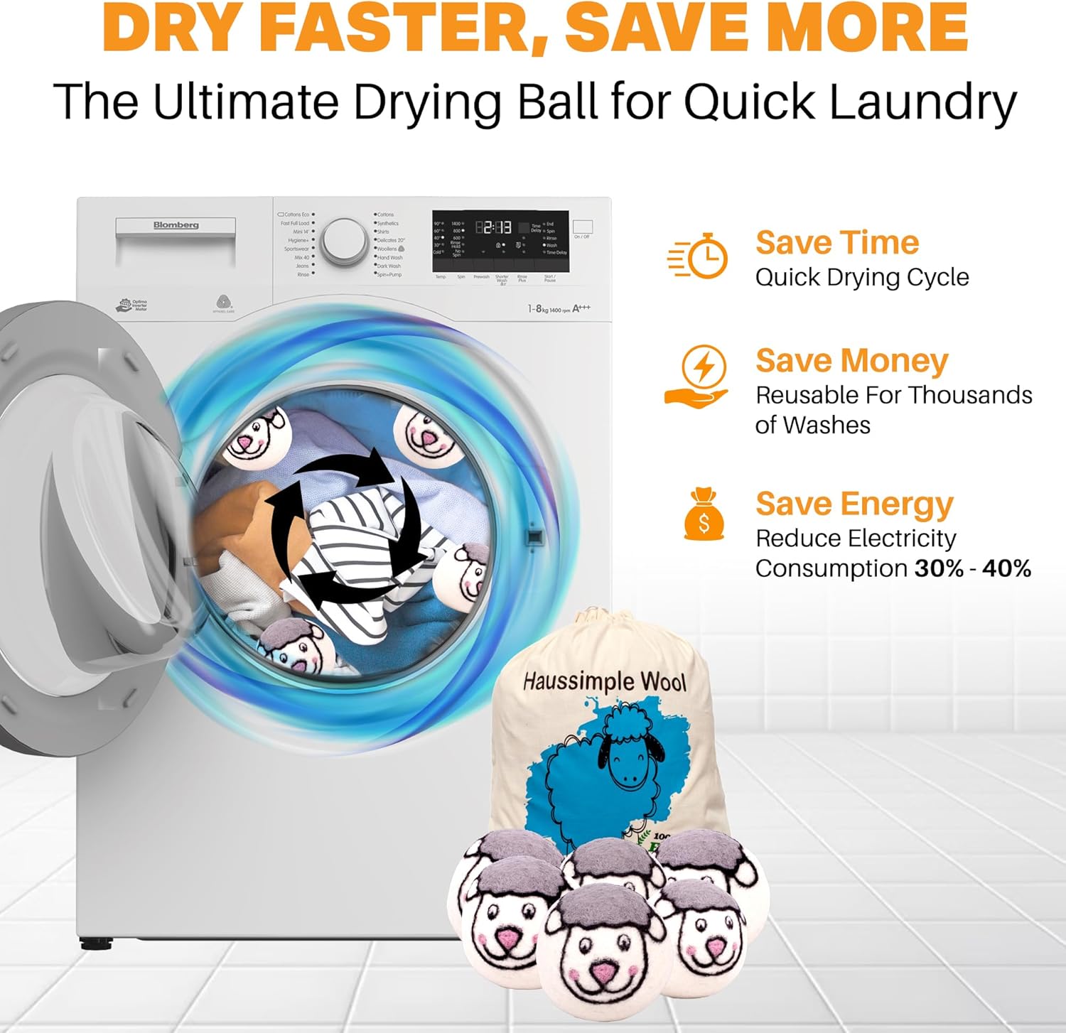 • Reduced Drying Time: Wool dryer balls help to separate and aerate clothes, allowing for better air circulation. This can lead to up to 30-40% faster drying times, which saves energy and reduces electricity costs.