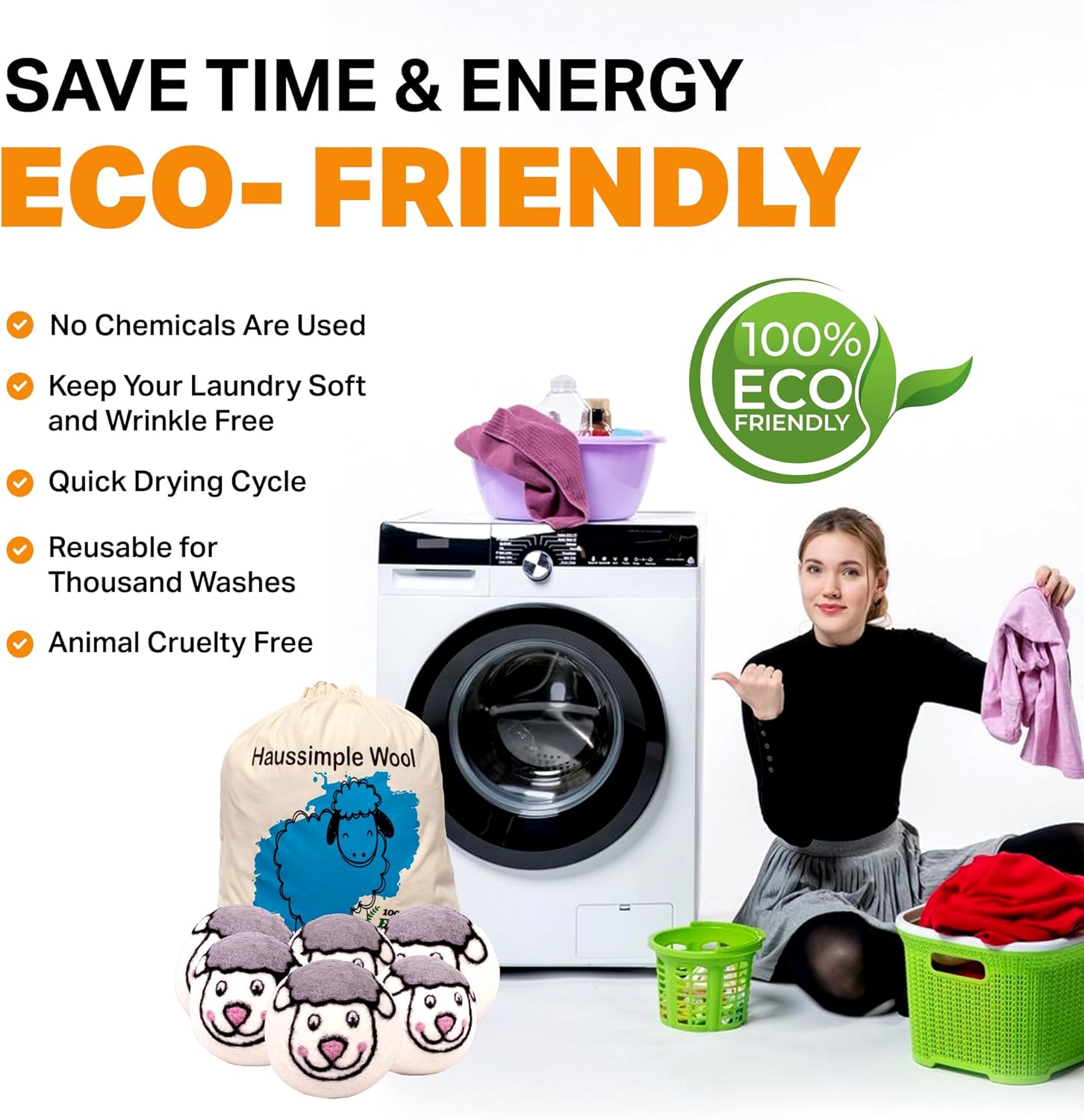 • Eco-Friendly and Reusable: Wool dryer balls are reusable, lasting for hundreds of loads. Unlike single-use dryer sheets, they generate less waste and are a more sustainable choice.