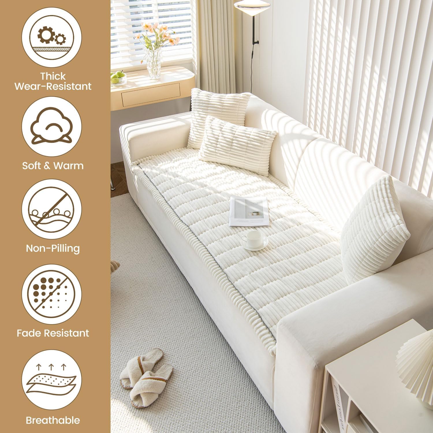 OTOB Sofa Covers for 3 Cushion Couch Washable, Fuzzy Non Slip Pet Friendly Couch Cover Protector Love Seat, All Seasons Soft Plush Furniture Bed Mats Sofa Slipcovers (Cream, 31.5" x 70.9'')