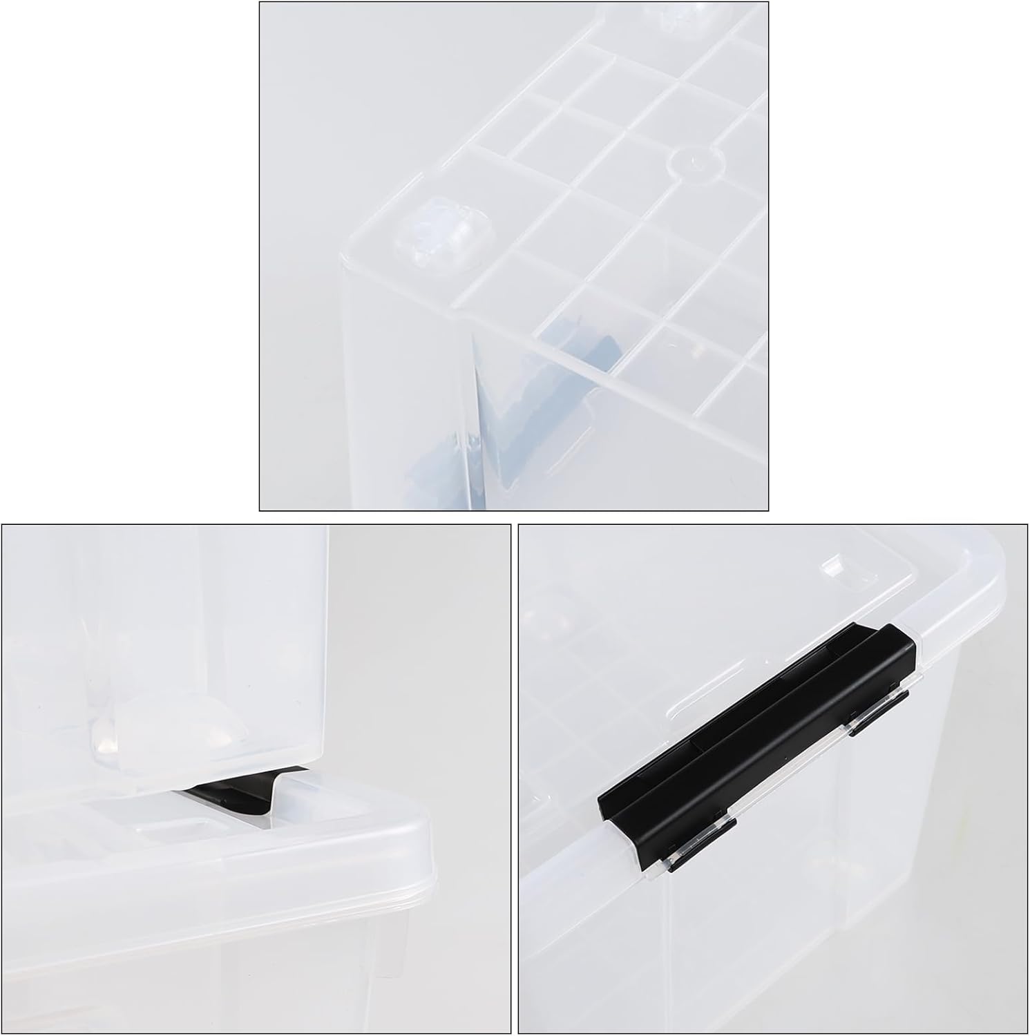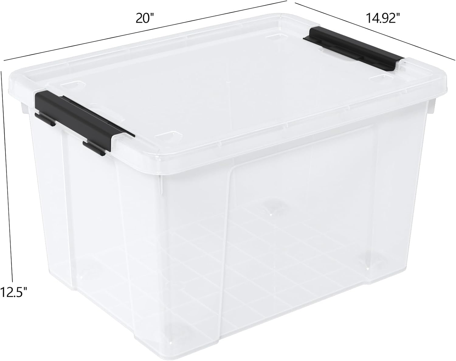 Set of 4 50 L Stackable Plastic Storage Container with Latching Lids and Wheels, Clear Home Garage Organization Bins Box, See-Through