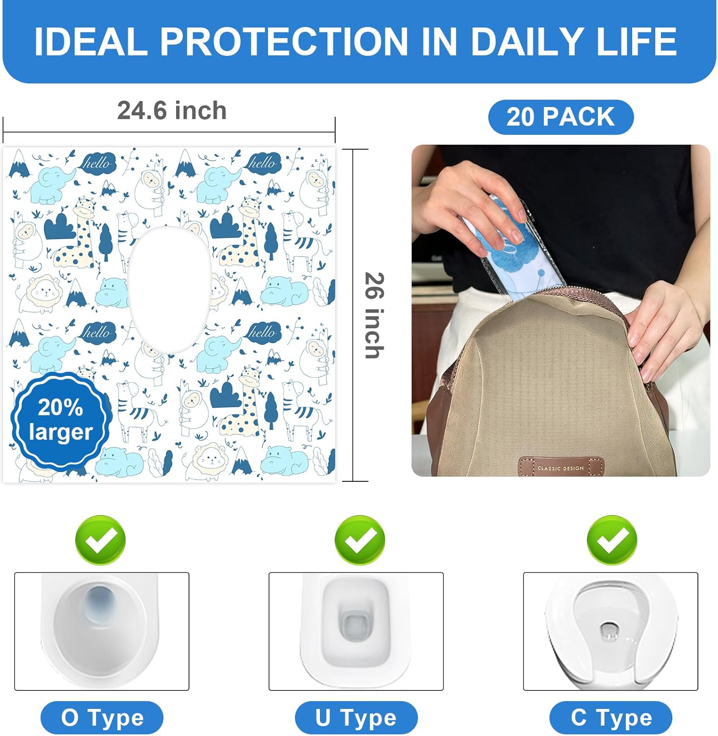 20 PCS Disposable Toilet Seat Covers, Extra Large Portable Potty Seat Covers for Toilet, Bathroom, Toddler & Kid Potty Training Seat Cover, Travel Essentials for Airplane, Trip-Animal